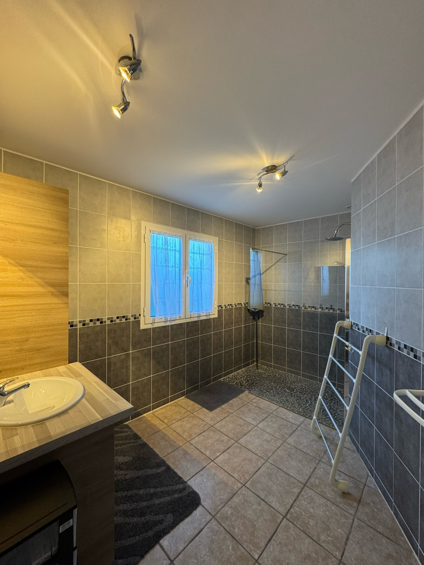 Située dans un quartier calme, maison composée salon séjour cuisine ouverte, 3 chambres, 2 salles d'eau, wc, cellier, garage, le tout sur un terrain clos de 572 m2