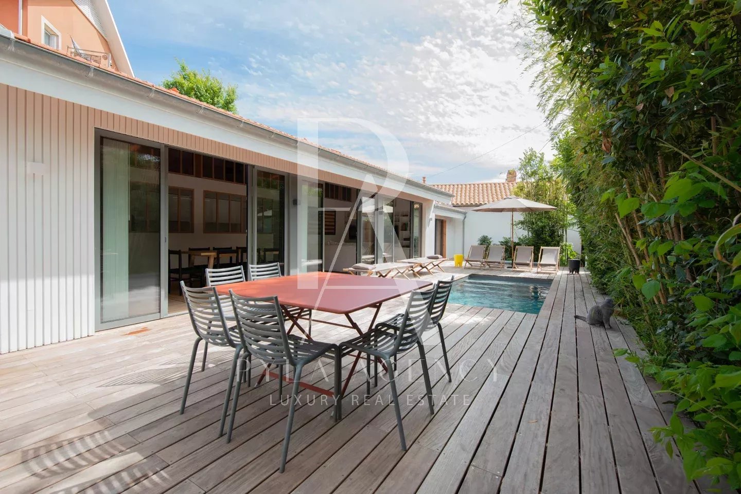 Découvrez cette magnifique villa rénovée, offrant un cadre de vie idyllique au calme, tout en étant à proximité immédiate du centre ville, de la plage et de la gare. Elle séduit par sa belle pièce de vie lumineuse avec sa cuisine semi ouverte, ouvrant sur un extérieur cosy composé d'un jardin soigné, d'une terrasse conviviale et d'une piscine chauffée, idéale pour en profiter toute l'année. La maison dispose de 5 chambres dont une suite parentale, ainsi que 2 salles d'eau et 2 toilettes indépendantes. Vous bénéficierez également d'un stationnement pour 3 véhicules. Le bien parfait, alliant confort, élégance et emplacement privilégié pour une maison familiale ou une maison secondaire sur le bassin.