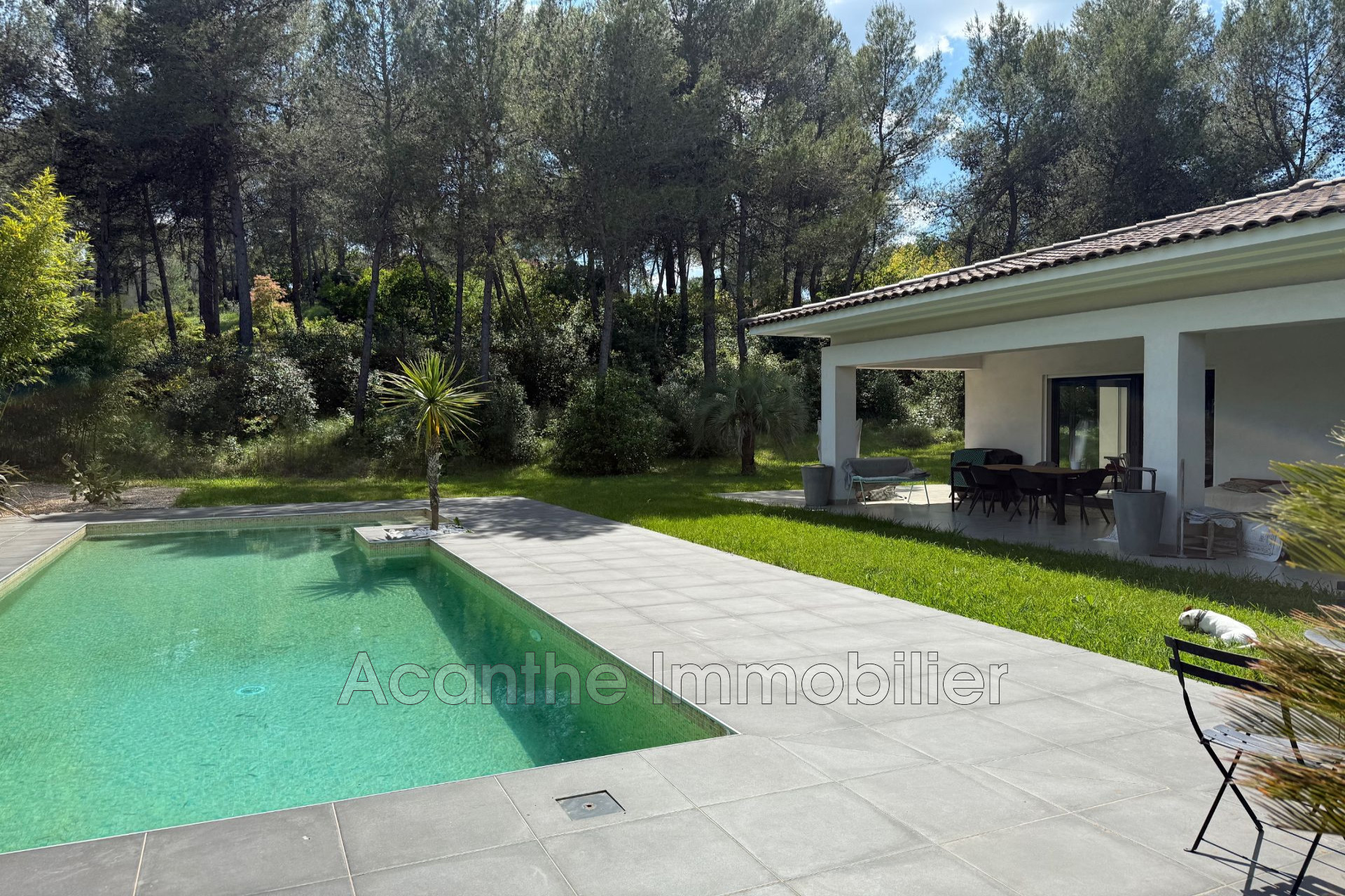 À l'extérieur, vous profiterez d'un environnement végétalisé et parfaitement entretenu, sans aucun vis-à-vis. La piscine, bien exposée, s'intègre harmonieusement à l'ensemble et invite à la détente.