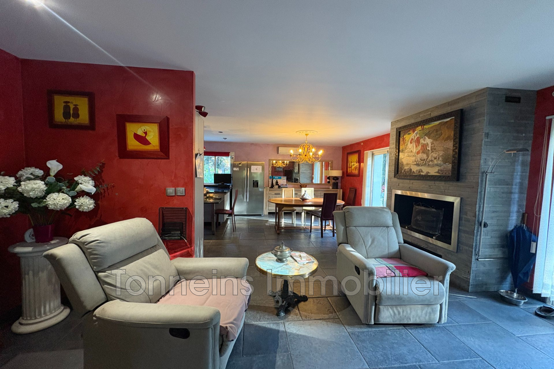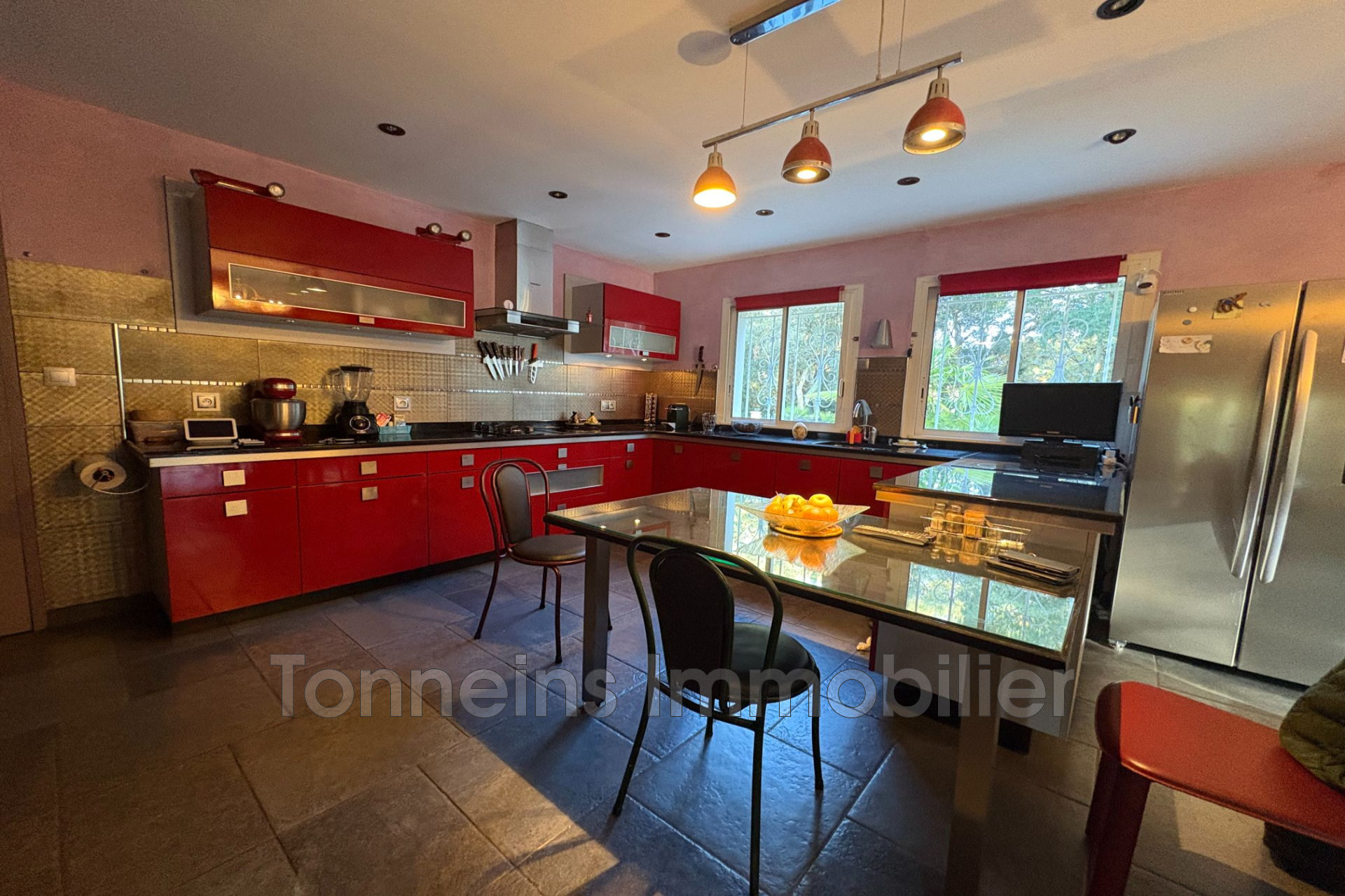 Si vous êtes à la recherche d'un bien implanté sur un magnifique écrin de verdure de 4375m² entièrement clôturé portail électrique, à moins de 5 min de l'échangeur d'autoroute de Marmande et moins d'1H de la rocade Bordelaise dans un environnement calme et reposant ? Cette maison d'environ 150m² située sur la commune très demandée de Fourques sur Garonne sans aucun vis-à-vis ni nuisance est faite pour vous !! Elle est composée d'une belle pièce de vie de plus de 50m² avec cuisine ouverte et cheminée dans le salon, une buanderie, une véranda de 21m² avec sa clim pour en profiter toute l'année, vous montez 3 marches pour accéder à l'espace nuit composé de 3 chambres dont 2 avec leur douche et lavabo et une avec accès direct à la SDB avec baignoire balnéo et toilettes, un autre WC, un sous-sol de plus de 80 m² avec double portail électrique. Chauffage au sol + 3 splits pour les étés plus chaud, double vitrage aluminium partout, un autre garage indépendant de 16m², un poulailler dans un calme absolu et cadre reposant complètent ce bien