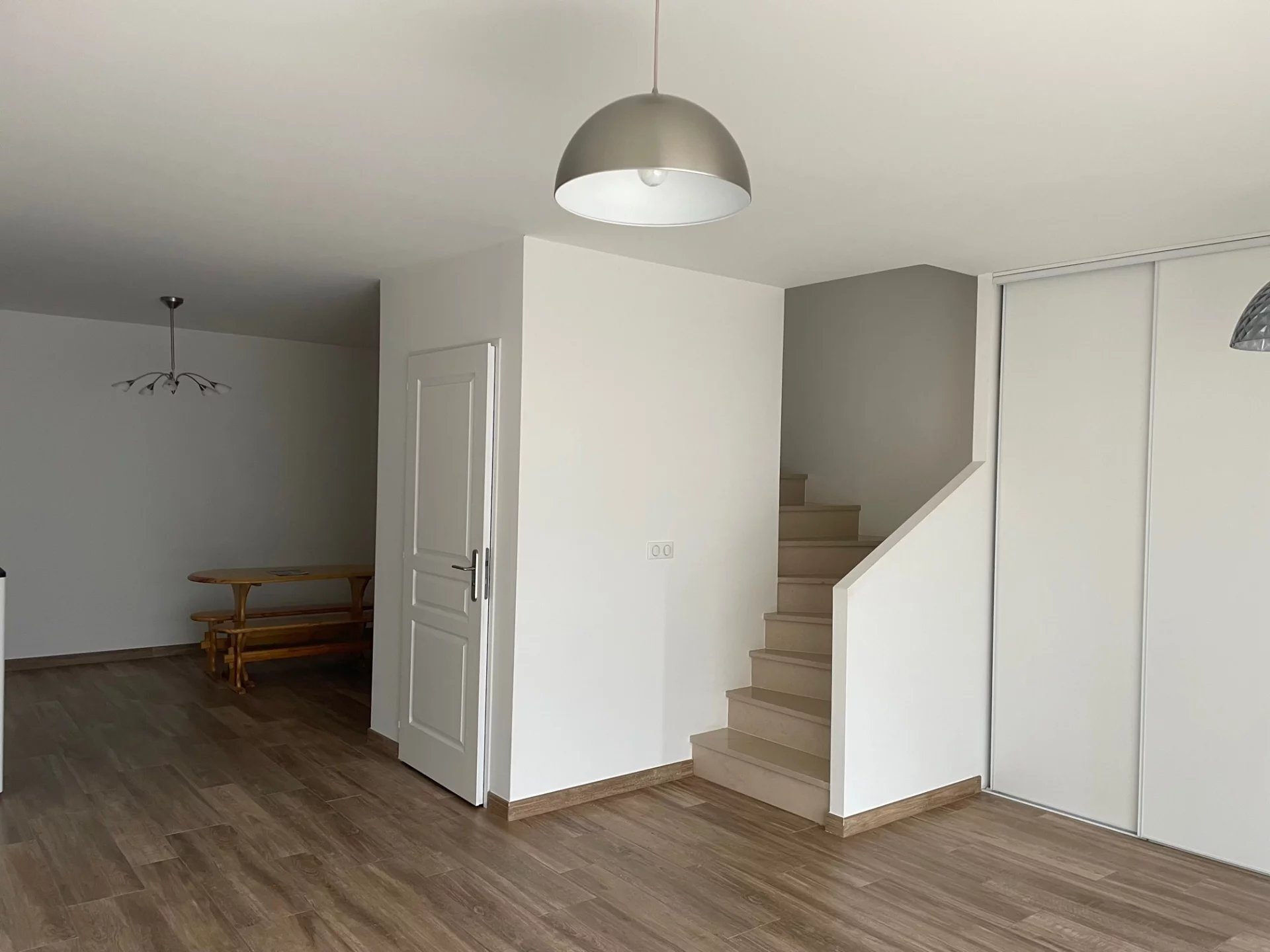 Maison de ville en plein coeur du centre ville construite en 2019 de 88,80 m² (95 m² au sol).Au rez de chaussée : séjour double avec poêle à pellets, cuisine indépendante équipée avec son vélux électrique, wc avec lave mains.À l'étage : palier, deux chambres dont une avec dressing, salle de bains avec baignoire et douche, wc séparés avec lave mains.En annexe : un garage avec porte motorisée et espace buanderie, une pièce aménagée de 15 m² au dessus du garage, une place de parking privative en extérieur.Pas de jardin.On aime : les prestations, les volumes et l'accès coeur de village à pied.Loyer : 1 300 EUR - pas de charges comprises, compteurs individuels.Disponible fin janvier 20261.Informations LOI ALUR : Honoraires locataire : 977 ¤ TTC.Dont honoraires état des lieux : 266 ¤.Dépôt de garantie : 1 300 ¤.Surface (arrondie) : 88 m². (gedeon_91056_32239457)