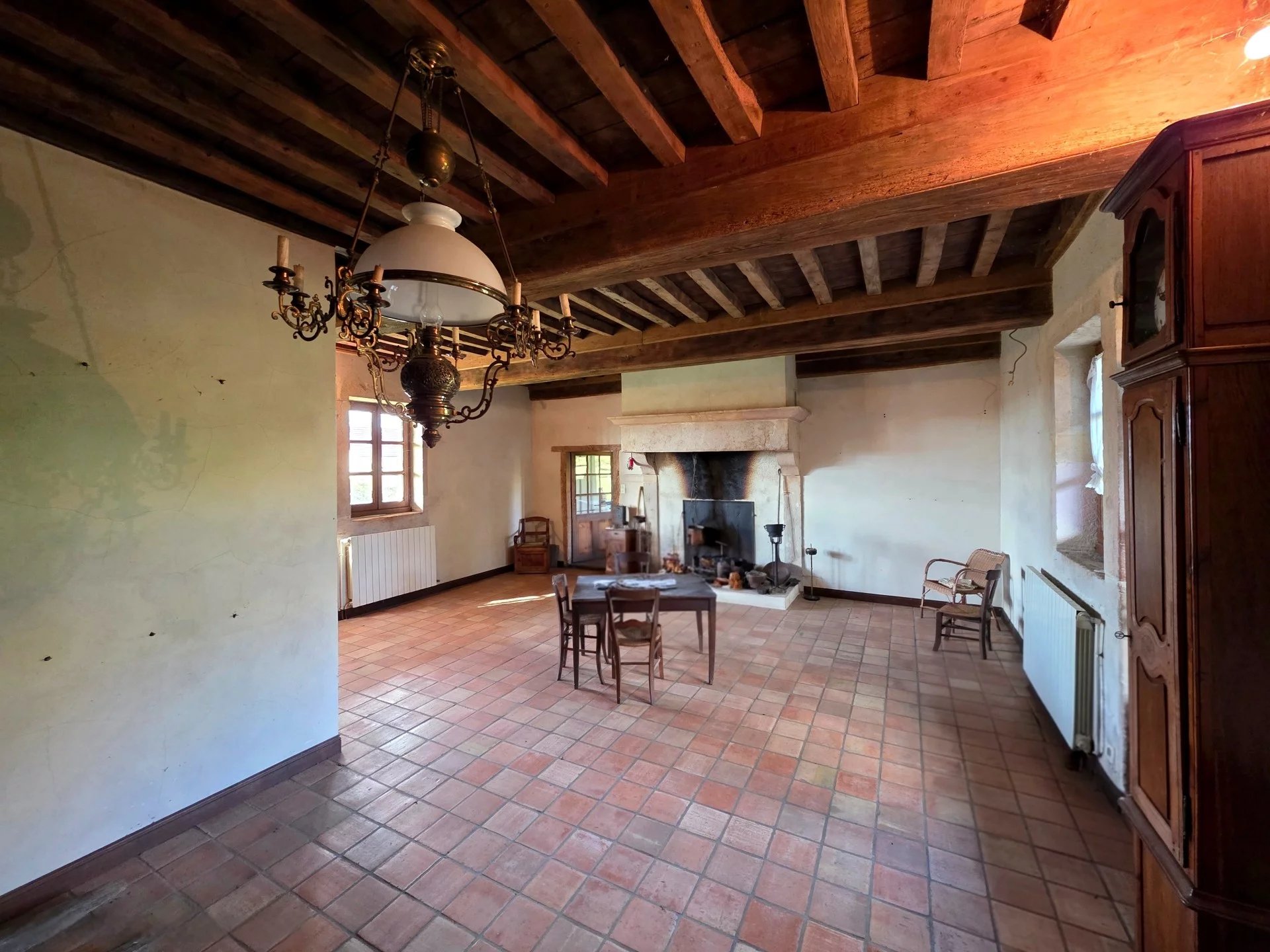 L?Agence des 3 Rivières vous propose sur la commune de Baudrières, à seulement 25 minutes de Chalon-sur-Saône, 5 minutes des commodités et des écoles de Saint-Germain-du-Plain, et moins d?1h30 de Lyon, que se dévoile cette bâtisse du XVIIIe siècle, pleine d?authenticité et de caractère. Une maison chargée d?histoire, où chaque pierre semble raconter le temps passé, et qui n?attend plus qu?un regard neuf pour lui redonner tout son éclat. Implantée sur un terrain arboré de 4 816 m², cette demeure familiale séduit par ses volumes généreux, ses matériaux nobles et le charme intact de l?ancien. Dès l?entrée, un vaste hall d?environ 20 m² donne le ton : un espace spacieux et accueillant, matériaux authentiques et atmosphère chargée d?histoire. La cuisine, équipée et agrémentée d?une cheminée à foyer ouvert, offre un accès direct sur l?extérieur pour des moments conviviaux. La pièce de vie, quant à elle, impressionne par ses 47 m², ses poutres apparentes, ses belles hauteurs sous plafond et sa cheminée centrale qui trône fièrement au coeur de la maison. La luminosité traverse cet espace avec élégance, grâce aux ouvertures sur les deux façades, permettant un accès direct aux terrasses orientées est et ouest. Le rez-de-chaussée propose une vie de plain-pied complète, avec deux chambres d?environ 13 m², une belle salle d?eau de 8,58 m² avec douche à l?italienne et sèche serviette, ainsi que des WC indépendants. A l?étage, un large dégagement dessert trois chambres (17 m², 12,34 m² et 12,12 m²), un bureau atypique de 10 m² avec sa mezzanine, un dressing et des toilettes séparées. Les poutres apparentes y rappellent le charme de l?ancien, tout en offrant de belles hauteurs sous plafond et des espaces faciles à réaménager selon les envies. Côté dépendances, la propriété dispose d?une cave voûtée d?environ 25 m² et d?un ancien four à pain d?environ 16 m² avec sa mezzanine, formant une adorable petite maisonnette pleine de cachet. L?extérieur séduit tout autant : un terrain arboré, un véritable espace parc propice à la détente, agrémenté d?un puits et de terrasses couvertes de part et d?autre de la maison. Un cadre bucolique où l?on imagine aisément profiter des beaux jours. Sur le plan technique, la maison est équipée de menuiseries bois en double vitrage et de volets bois. Le chauffage central est alimenté par une chaudière au fioul, et plusieurs cheminées sont présentes dans la maison, nécessitant une remise aux normes si l?on souhaite les exploiter. L?assainissement individuel, de type fosse septique, est fonctionnel mais non conforme aux normes actuelles. La toiture en tuiles plates repose sur une charpente traditionnelle, typique des bâtisses anciennes, conférant à l?ensemble un caractère indéniable. Cette demeure pleine d?histoire allie charme, authenticité et potentiel. Quelques travaux de rénovation permettront de révéler toute sa beauté et d?en faire un lieu de vie unique, à l?image de ceux qui sauront lui redonner vie. Une belle opportunité pour les amateurs de vieilles pierres, d?espaces et de caractère, à proximité des grands axes. Pour plus d'informations ou pour organiser une visite, veuillez contacter l'Agence des 3 Rivières. Nous sommes à votre disposition pour répondre à toutes vos questions et vous accompagner dans votre projet immobilier. Ce bien est présenté par Adeline PERCHET de l'Agence des 3 Rivières - 03.85.42.00.52 - Saint Germain du Plain. Les informations sur les risques auxquels ce bien est exposé sont disponibles sur le site Géorisques : http://www.georisques.gouv.fr