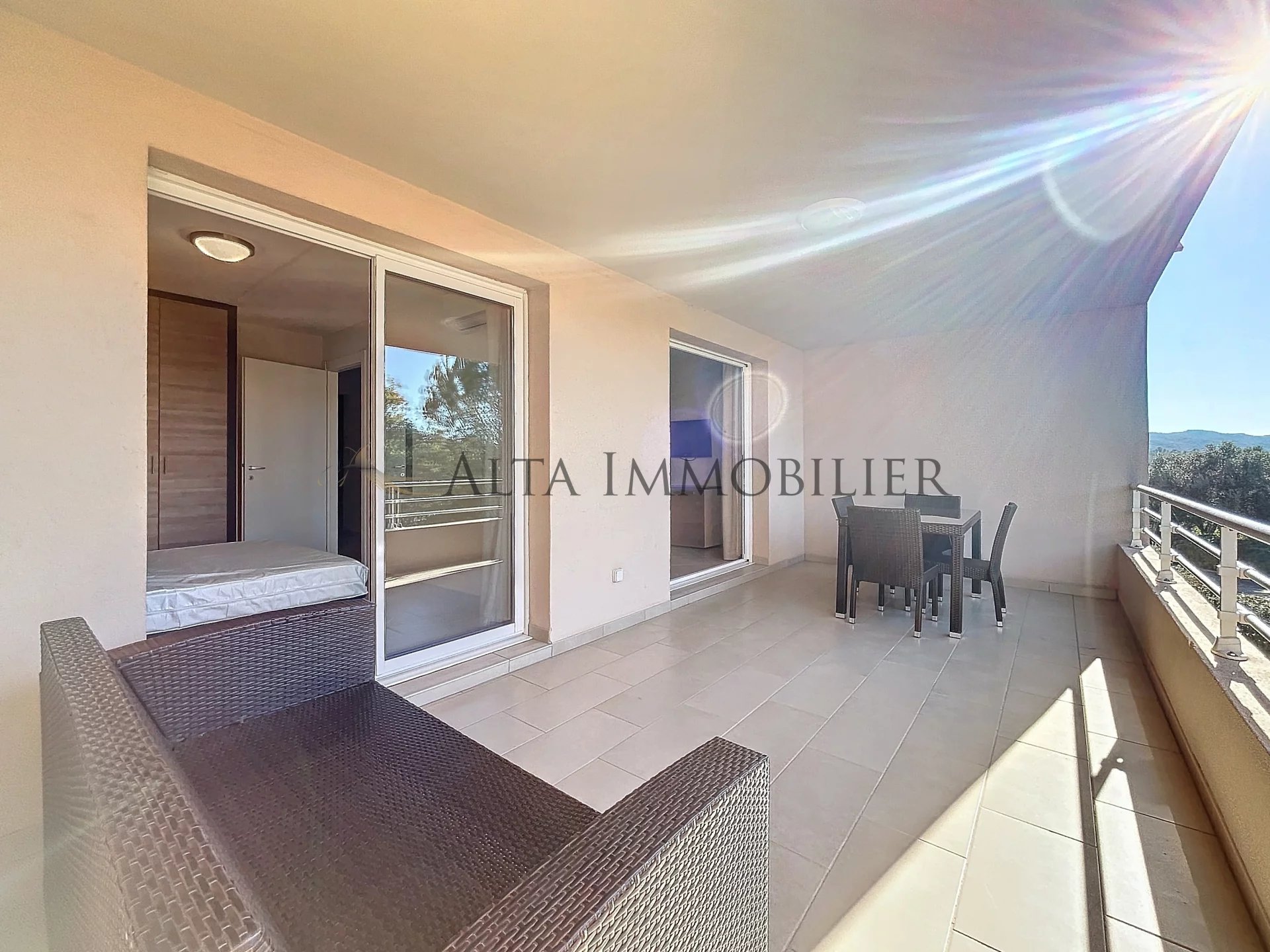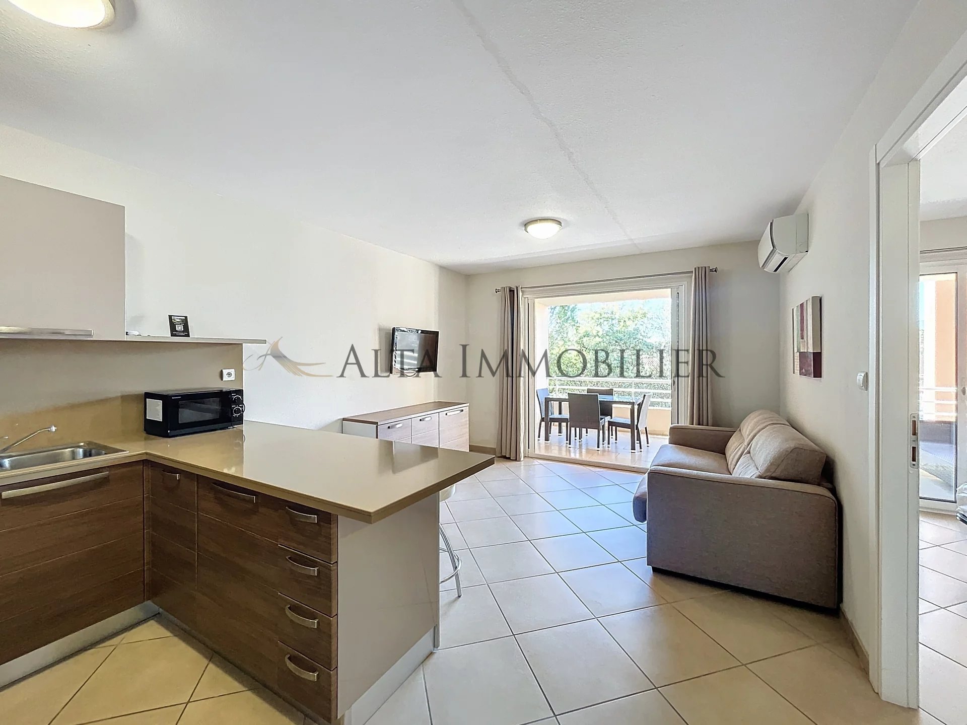 [sous Offre] Bel appartement au sein d'une résidence de standing sécurisée proche du port de Porto-Vecchio. Le bien de type T2 d'une superficie totale de 38m2 se compose d'une pièce de vie de 21m² avec cuisine équipée donnant un accès à la terrasse couverte d'environ 19m², d'une chambre séparée avec placard et d'une salle d'eau. La terrasse exposée Ouest offre un bel éclairage et grâce à son accès par une baie vitrée à galandage depuis le salon elle agrandit considérablement l'espace de vie. Situé au 2eme étage avec ascenseur, l'appartement bénéficie d'une vue dégagée. Au calme, il est en parfait état et vendu meublé vous n'aurez plus qu'à y déposer vos valises! L'ensemble de la copropriété est très bien entretenu, elle dispose d'un parc arboré essentiellement d'essences locales, de pelouses, et est entièrement sécurisée avec portail motorisé et gardien. Une piscine de forme libre de 300m2 environ et d'une profondeur de 1,60m2 avec bains de soleils et parasols permet de se rafraîchir pendant la belle saison. Son emplacement à moins de 5 minutes du port et du centre ville à pied, vous permettra de profiter des restaurants et commerces. Les plages de Santa Giulia et Palombaggia sont à 10 minutes en voiture. L'appartement est disponible en Juin 2026.