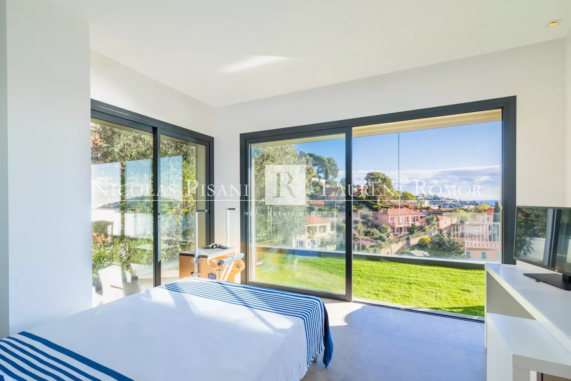 Nichée dans un environnement privilégié, cette villa contemporaine d’environ 160 m² séduit par son architecture épurée et ses prestations d’exception. Véritable havre de confort, elle offre une magnifique piscine sur le toit, d’où l’on profite d’une vue panoramique sur la rade de Villefranche sur mer. Étage supérieur L’espace de vie, baigné de lumière grâce à de larges baies vitrées, s’ouvre sur une vaste terrasse permettant de prolonger naturellement le séjour vers l’extérieur. Une cuisine équipée haut de gamme ainsi qu’un WC indépendant complètent ce niveau. Étage inférieur L’espace nuit accueille trois chambres élégantes, chacune disposant de sa salle de douche privative et de son WC, toutes donnant accès à une profonde terrasse offrant quiétude et intimité. Prestations complémentaires Un garage fermé pouvant accueillir 2 à 3 véhicules vient parfaire ce bien rare.