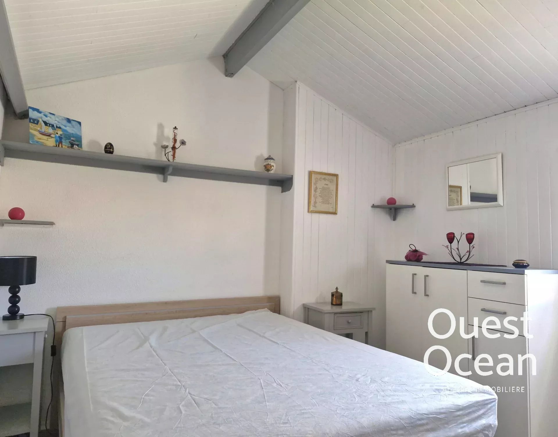 Votre agence Ouest Océan ,vous accueille téléphoniquement du lundi au vendredi,de 8h30 à 18h: Maison ,dans une résidence idéalement placée proche de la plage du BOUIL. Elle est composée d'une entrée , pièce de vie lumineuse avec vue sur votre parcelle de terrain paysagé, cuisine meublée , une chambre et une véranda. A l'étage , une grande mezzanine pour du couchage. En annexe , une place de stationnement , divers jeux de loisirs, local vélos communs et une piscine en copropriété. Prenez rendez-vous avec notre conseiller M Yann ROBINEAU afin d'organiser une visite.