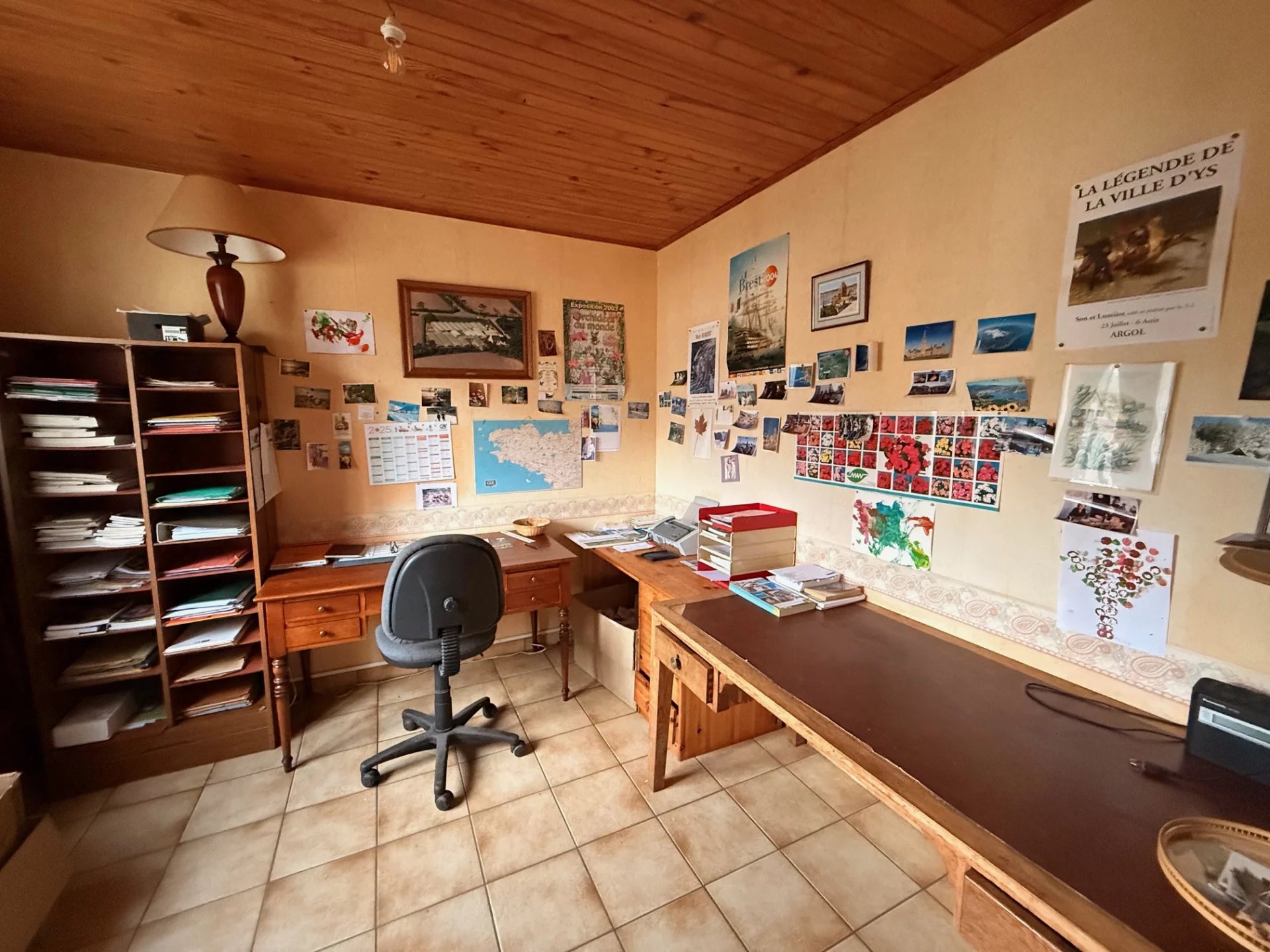 Argol, non loin des plages, propriété proposant une belle néobretonne ayant au RDC : entrée, séjour salon avec cheminée donnant sur terrasse exposée sud, cuisine aménagée, bureau, une chambre, salle d'eau, wc, cellier ; à l'étage: palier desservant quatre chambres, dressing, salle d'eau, wc. Cave avec local chaufferie et cave à vin. Grand garage/hangar, ensemble de serres en très bon état et fonctionnelles, le tout sur une parcelle de 8338 m². Propriété entretenue, avec possibilité d'activités agricole ou de stockage.