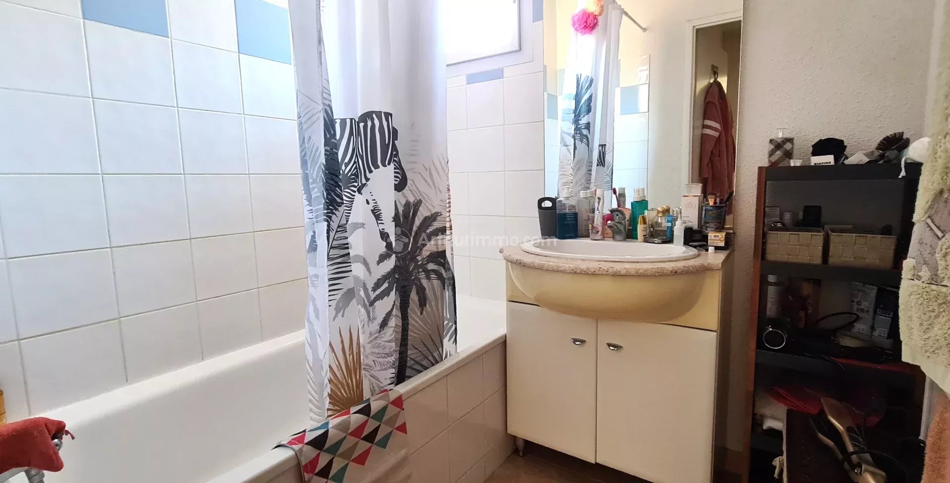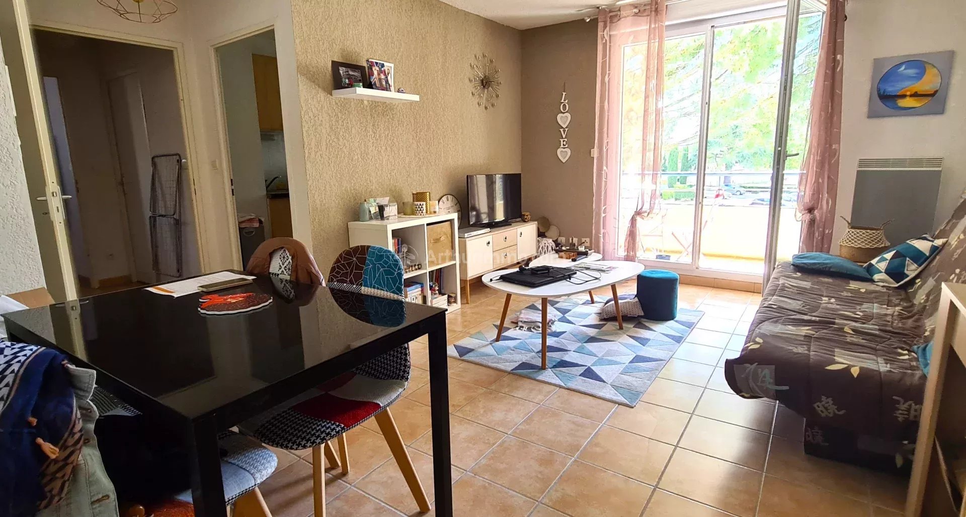ALBI Atlantis. Appartement T2 de 43 M² habitables en résidence sécurisée. Un séjour avec loggia, une cuisine indépendante aménagée et équipée (frigo top, plaques électriques et hotte), une chambre avec placard, une salle de bains et un WC. Une place de parking privative. Chauffage électrique. Disponible fin Décembre.