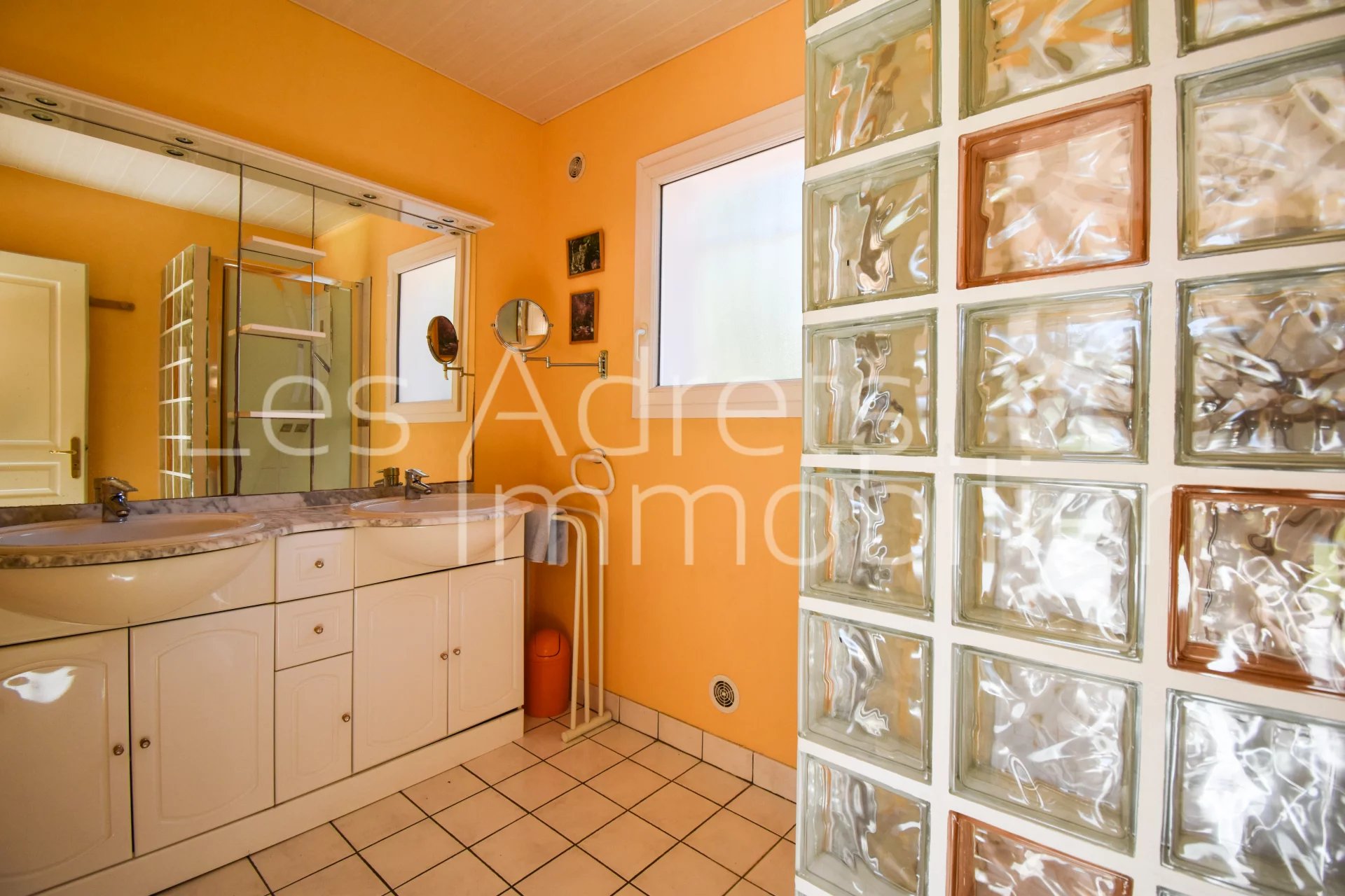 Le terrain d’environ 2 200 m² et les espaces de stationnement complètent cette villa où le style provençal, la fonctionnalité et la douceur de vivre se conjuguent parfaitement.