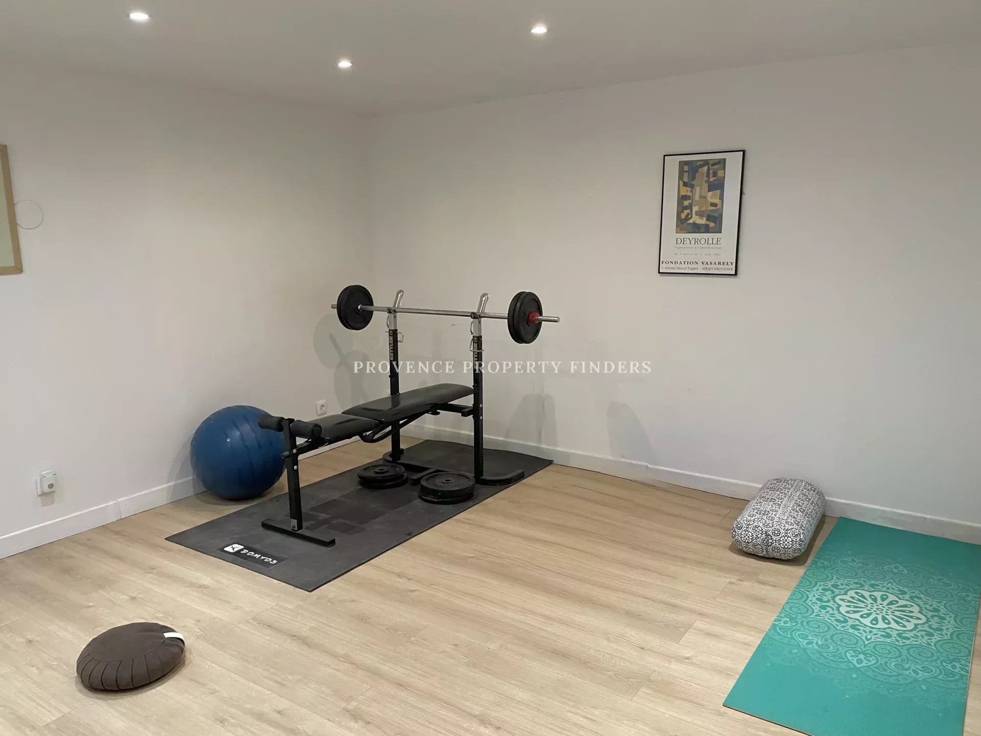 Agrandie en 2011, la propriété propose un vaste espace de vie lumineux de 120 m² avec cheminée, cuisine ouverte et salle à manger, quatre chambres (1 suite parentale) avec salles d'eaux privatives, une salle de sport (pouvant devenir une cinquième suite), un bureau et une buanderie.