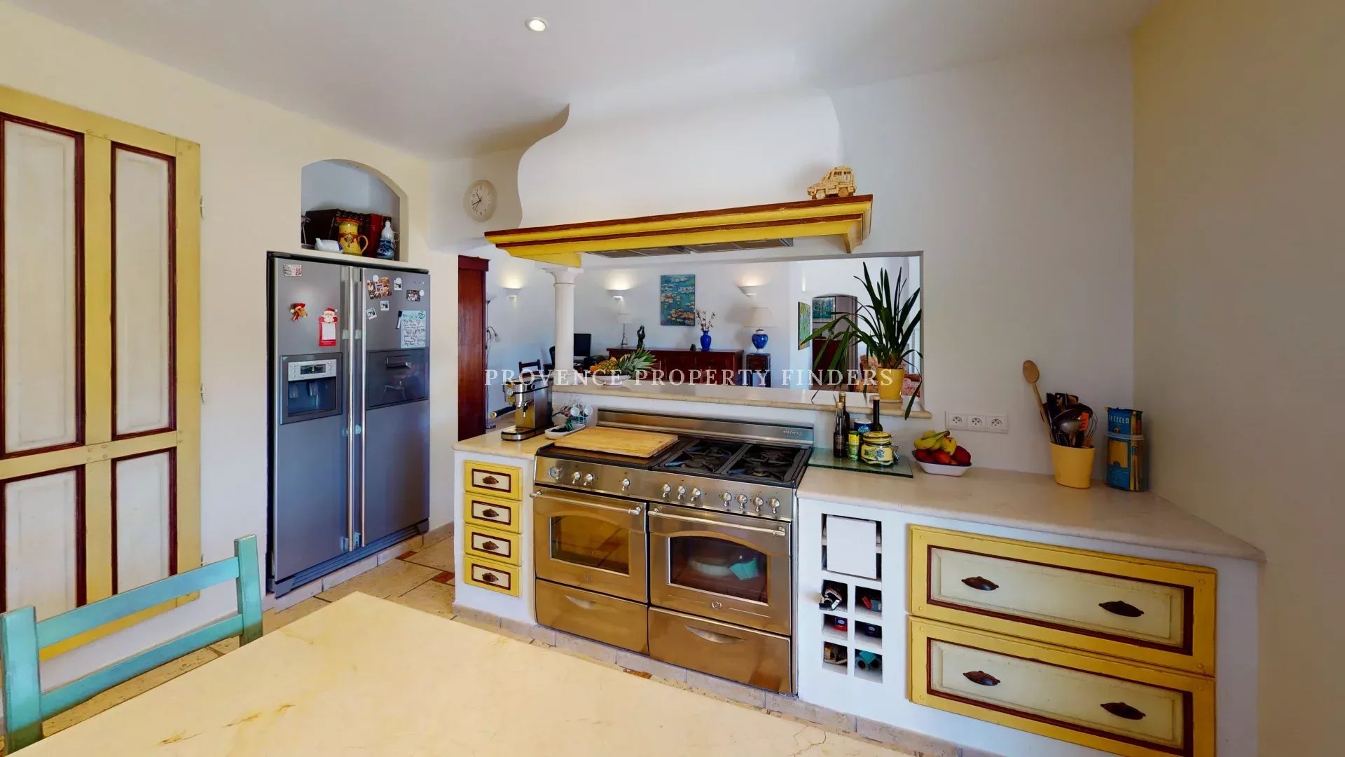 Entre mer et montagnes, cette villa élégante à Lorgues offre une vue superbe et un confort exceptionnel. Principalement de plain-pied, elle propose un séjour lumineux sous toit cathédrale, une suite parentale, une chambre supplémentaire et une salle de bains luxueuse. Un T3 et un T2 complètent l’ensemble, parfaits pour accueillir ou louer. À l’extérieur : terrasses, cuisine d’été, pool house et magnifique piscine à débordement 15×6 m. Chauffage central au gaz. Une opportunité rare de vivre pleinement l’art de vivre provençal.