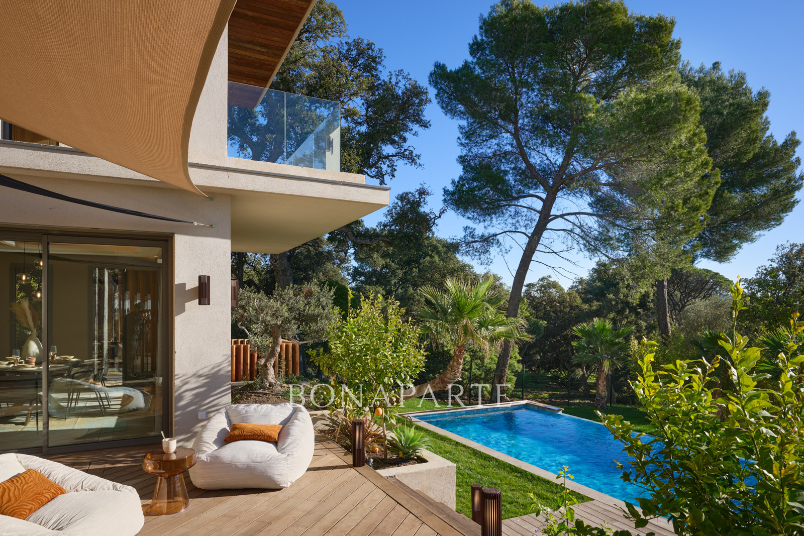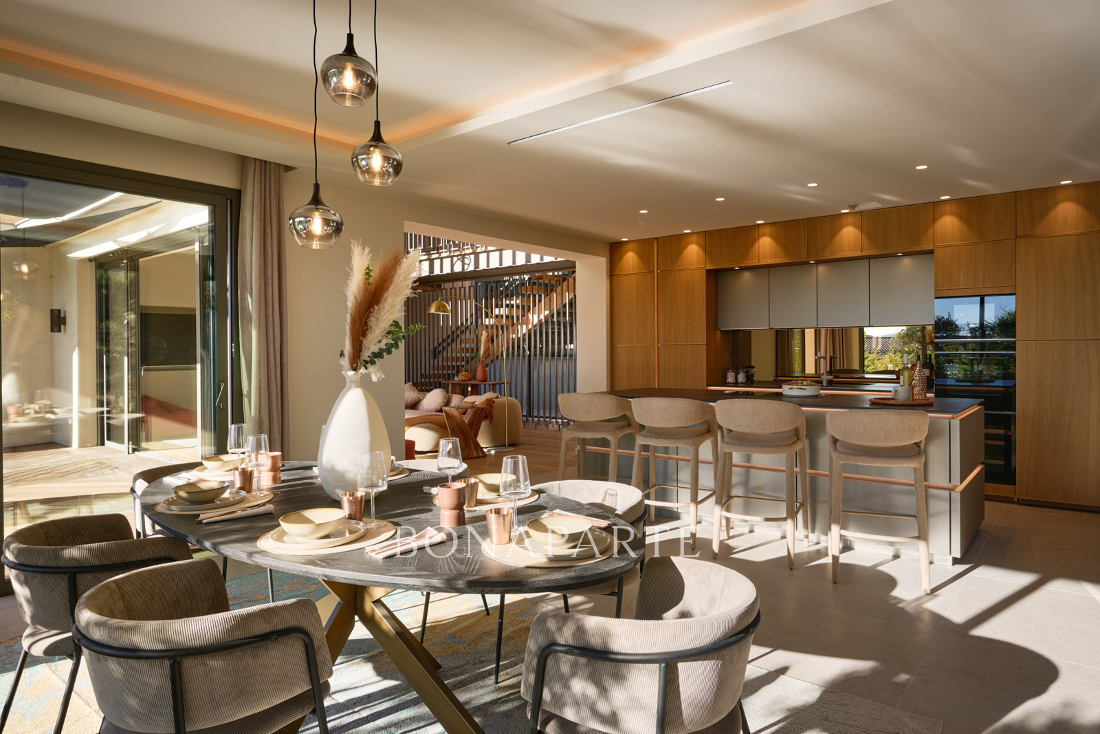 Dès l'entrée, le ton est donné : volumes grandioses, lignes architecturales épurées, ambiance haut de gamme et lumière plein sud omniprésente.