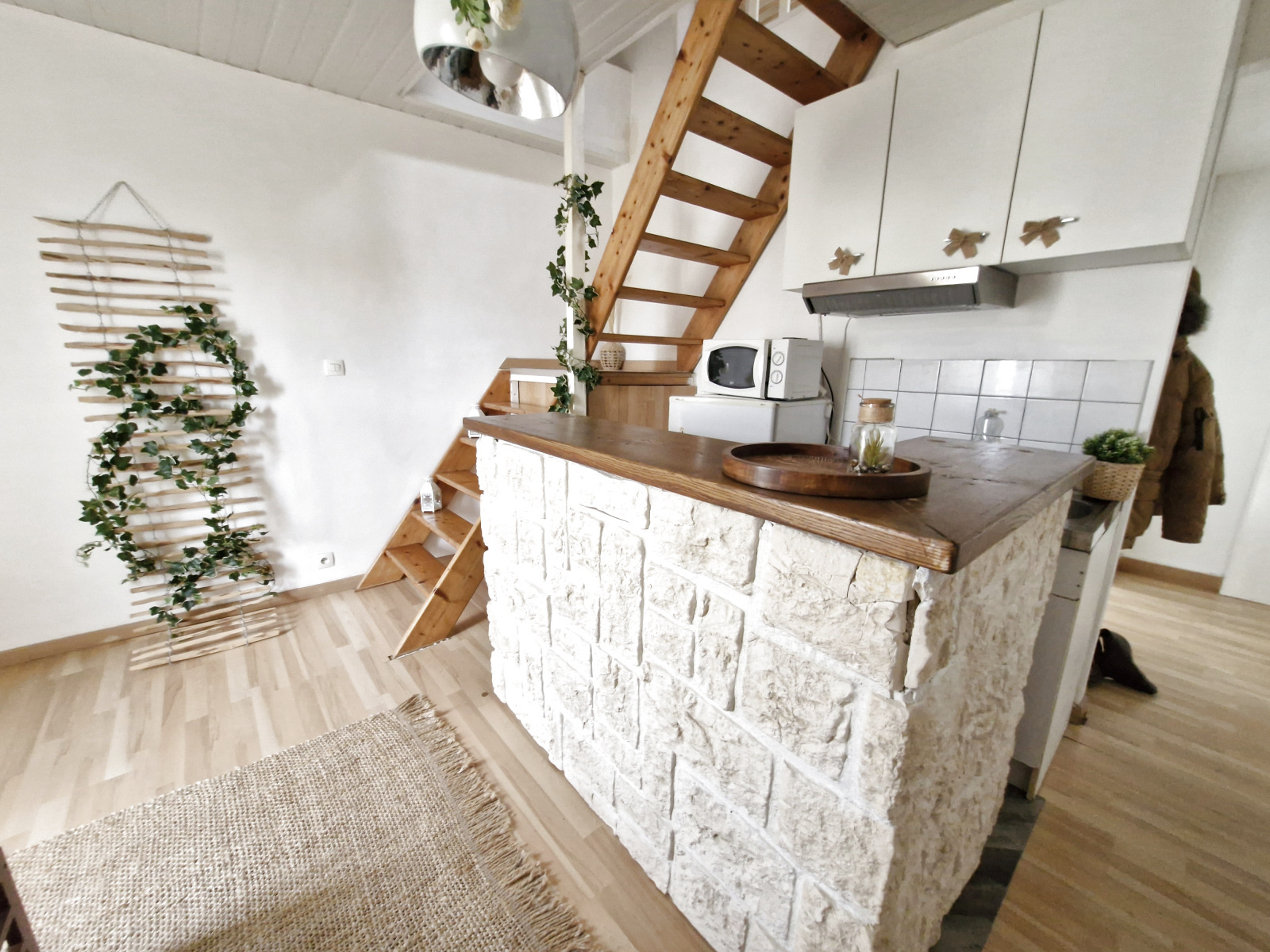 L'appartement se compose d'une pièce de vie lumineuse, d'une cuisine équipée avec bar, d'un espace nuit en mezzanine ainsi que d'une salle d'eau. Bénéficiant du calme du dernier étage et d'une belle luminosité, il assure un confort de vie appréciable au quotidien grâce à son emplacement central.
