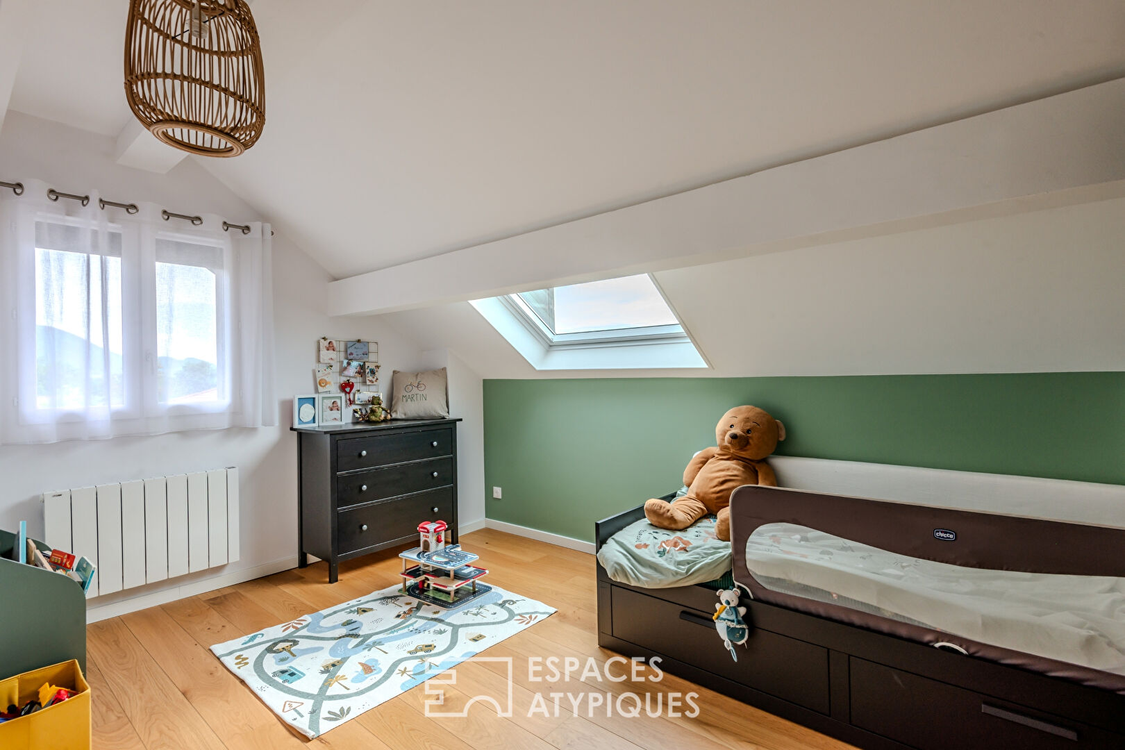 Située aux portes de Genève, cette maison d'architecte contemporaine de 250 m² habitables environ incarne l'alliance parfaite entre design audacieux et fonctionnalité haut de gamme. Dès l'entrée, cette maison surprend avec cette spectaculaire hauteur cathédrale, véritable signature architecturale qui donne le ton à l'ensemble des volumes. L'espace de vie, baigné de lumière naturelle, s'articule autour d'une cuisine moderne et épurée avec cellier/buanderie, s'ouvrant sur une salle à manger conviviale et un salon invitant à la détente. Le rez-de-chaussée est complété par un bureau indépendant, idéal pour une profession libérale, et une première chambre avec salle de douche privative pour accueillir vos hôtes. L'escalier aux lignes graphiques mène à l'étage où l'espace nuit se déploie autour de quatre chambres lumineuses. La suite parentale est une véritable bulle de luxe, offrant une grande salle de bain complète (douche et baignoire) et un dressing aménagé. Une seconde salle de bains dessert les autres chambres. Le sous-sol de la propriété ajoute une dimension loisir et pratique avec une salle de home cinéma aménagée, de vastes espaces de rangement, un local technique, et un garage double avec accès direct. A l'extérieur, les aménagements poursuivent cette quête d'excellence : une élégante piscine structure le jardin paysagé, promettant d'agréables moments durant les beaux jours. Côté technique, des panneaux solaires assurent une autonomie énergétique appréciable. Cette maison d'exception est le lieu idéal pour une vie de famille moderne, alliant l'élégance du contemporain à la générosité des volumes, à seulement quelques minutes de Genève. CLASSE ENERGIE : D/ CLASSE CLIMAT : B Montant moyen estimé des dépenses annuelles d'énergie pour un usage standard, établi à partir des prix de l'énergie de l'année 2022 : entre 2780Euros et 3810 Euros. Les informations sur les risques auxquels ce bien est exposé sont disponibles sur le site Géorisques pour les zones concernées : www.georisques.gouv.fr. Contact : Nadia 06.68.91.95.58 Nadia BELMAHDI (EI) Agent Commercial - Numéro RSAC : 524 811 239 - Bourg-en-Bresse.