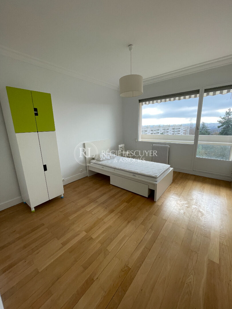 A LOUER - CALUIRE , Chemin des Petites Brosses, dans une résidence avec espaces verts et terrain de tennis, et gardien, un appartement F3 Bis de 91.16 m² composé d'un séjour double de 33.20 m² avec parquet et un balcon terrasse exposé plein Sud, une cuisine indépendante entièrement aménagée et équipée de plaques de cuisson gaz, hotte, four, micro ondes et lave vaisselle, cellier attenant à la cuisine et balcon, dégagement avec rangements aménagés, 2chambres avec parquet et une salle de bains. Chauffage semi collectif, eau chaude par cumulus, eau froide individuelle. Possibilité d'un garage de 25 m². « Les informations sur les risques auxquels ce bien est exposé sont disponibles sur le site Géorisques : georisques.gouv.fr »