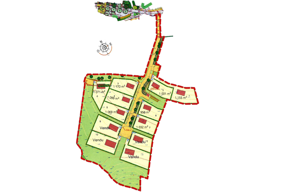 A Vendre Terrains à bâtir dans lotissement de douze lots à la campagne proche de Condom A la Vente Terrains à bâtir dans futur lotissement champêtre à Castelnau-sur-l'Auvignon. 8 lots sont encore disponibles dans ce lotissement, idéalement situé à moins de dix minutes de Condom, avec vue sur la campagne environnante. Les travaux d'aménagements débutent en Septembre 2024, les lots seront raccordés au tout à l'égout. La superficie des lots varie entre 958 m² et 1 155 m² avec un prix de départ de 33 600 euros jusqu'à 38 400 euros. Le lotissement sera agrémenté de haies, de végétations et d'espaces verts, ainsi que d'une allée centrale.