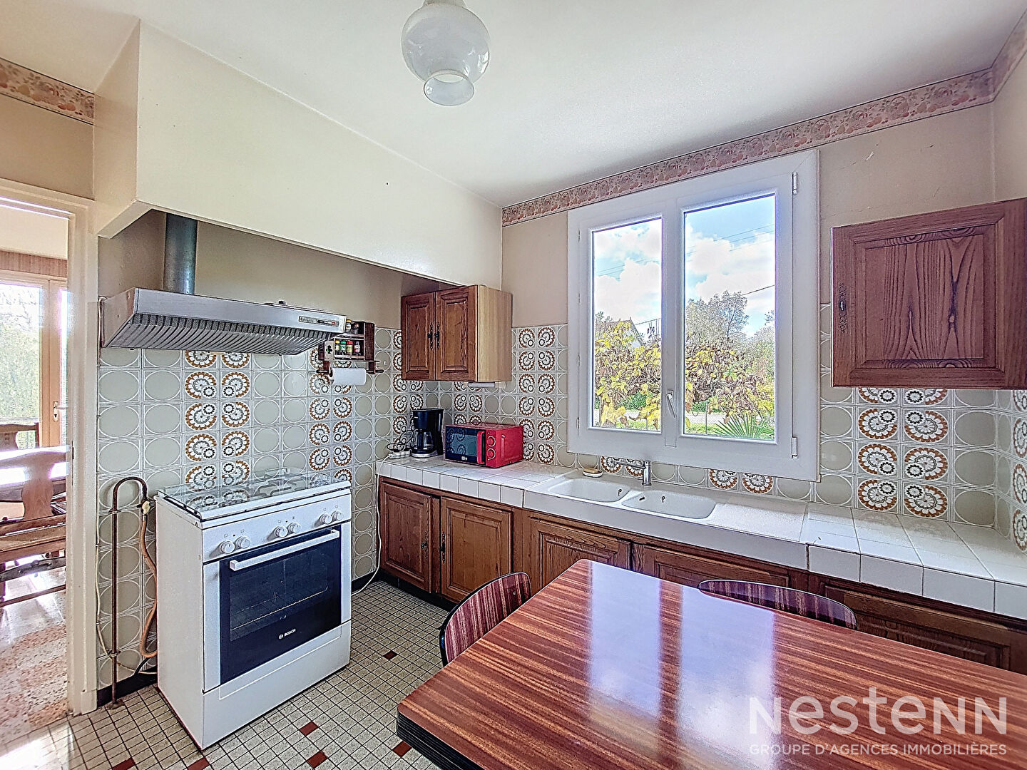 A la Vente Maison de quatre chambres sur parcelle de plus de 8 500 m² Cette maison des années 1970, d'une surface habitable de 102 m², repose sur un sous-sol de 95 m² et se situe dans un environnement verdoyant, aux portes de la ville. Quelques marches mènent à l'entrée principale qui s'ouvre sur un hall distribuant les différentes pièces de vie. La maison offre un séjour lumineux de 28 m² agrémenté d'un insert et prolongé par le balcon, ainsi qu'une cuisine indépendante de 10 m². Un couloir mène à quatre chambres confortables, dont les surfaces varient entre 9 et 11 m², une salle d'eau et des toilettes séparées. Depuis l'habitation, un escalier intérieur permet d'accéder au sous-sol, composé d'un vaste garage de 70 m² et d'un espace de 26 m² actuellement aménagé en buanderie. L'ensemble est implanté sur une belle parcelle boisée d'environ 8 500 m², offrant un cadre naturel à proximité immédiate de toutes les commodités de Condom. Une visite virtuelle est disponible sur notre site.