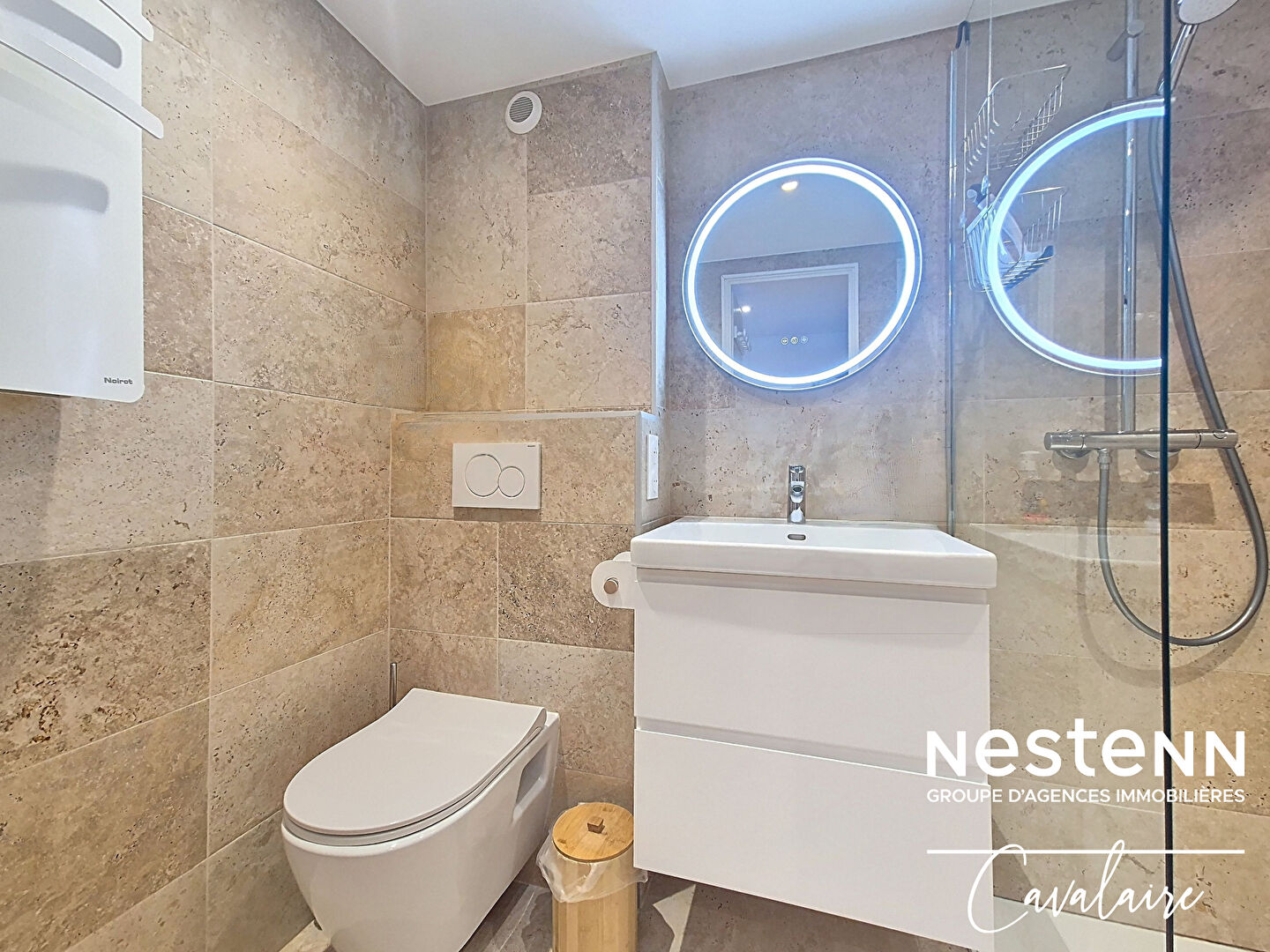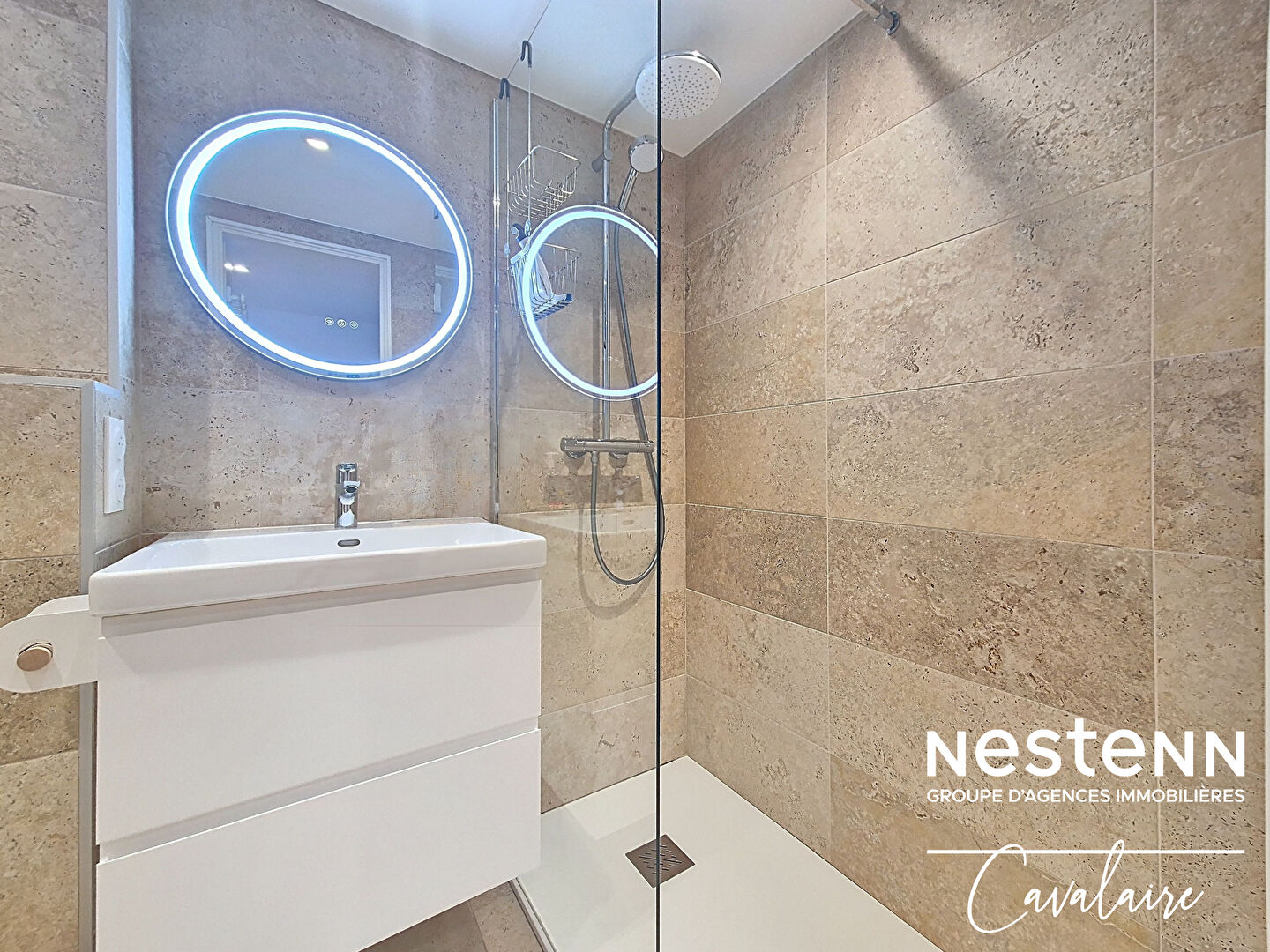 EXCLUSIVITE VUE MER - L'agence Nestenn Cavalaire est heureuse de vous présenter cet appartement entièrement climatisé et refait intégralement avec des matériaux de qualité (et des garanties décennales en cours), d'environ 36 m² ( 26,6 m² loi Carrez ) avec vue mer, terrasse, stationnement privatif et piscine ! Dans une résidence sécurisée avec piscine, cet appartement, au premier et dernier étage est composé d'une entrée avec rangements, d'une chambre, d'une salle d'eau avec WC, d'un séjour / cuisine donnant sur une terrasse avec vue mer et d'une mezzanine. L'ensemble est en excellent état ! Une place de stationnement privative est également à disposition ! Excellent rapport locatif, contactez nous dès maintenant !