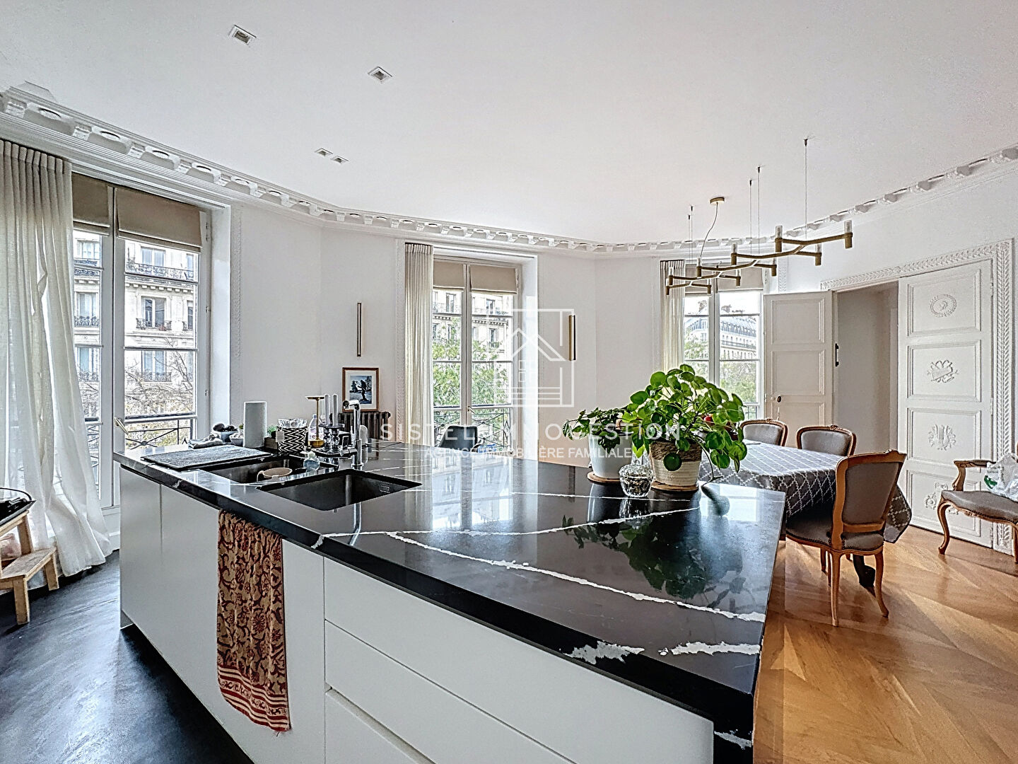 Appartement familial de caractere ? 110 m2 environ ? 3e etage avec ascenseur ? Deux suites ? Piece de vie d'exception SISTEL'IMMO GESTION vous propose, dans l'un des secteurs les plus recherches du 10e arrondissement, a deux pas de la rue des Recollets et du canal Saint-Martin, un appartement situe au 3e etage avec ascenseur, au sein d'un tres bel immeuble ancien ouvre. Ce bien se distingue par ses volumes, sa luminosite, sa hauteur sous plafond et la qualite remarquable de sa renovation. L'appartement s'ouvre sur une grande galerie d'entree, veritable piece a part entiere, dotee d'une fenetre, de rangements sur mesure toute hauteur et d'un espace buanderie parfaitement integre. Cette entree distribue un double sejour aux proportions genereuses, baigne de lumiere et preservant tout le charme de l'ancien avec parquet en point de Hongrie, moulures et belle hauteur sous plafond. Le sejour communique avec une salle a manger accompagnee d'une cuisine haut de gamme concue par un architecte. Il s'agit de la piece maitresse de l'appartement. Elle beneficie de plusieurs ouvertures, d'une circulation fluide et d'une ambiance chaleureuse. Les materiaux nobles, le mobilier sur mesure et le traitement architectural en font un espace de vie unique dans le quartier. La partie nuit propose deux veritables suites, chacune avec sa propre salle d'eau. La premiere comprend un dressing et un coin bureau ideal pour le teletravail. La seconde, calme et confortable, dispose egalement de sa salle d'eau attenante. L'ensemble de l'appartement est presente dans un etat irreprochable : aucune renovation n'est a prevoir. La luminosite omnipresente, les volumes, la qualite des materiaux et la coherence generale du plan en font un bien rare et tres recherche. Une cave complete ce bien. Un appartement elegant, fonctionnel et lumineux, ideal pour ceux qui recherchent un lieu de vie singulier dans l'un des emplacements les plus apprecies du 10e arrondissement. Copropriété de 92 lots - dont 63 lots habitation. (Pas de procédure en cours). Charges annuelles : 4400 euros.