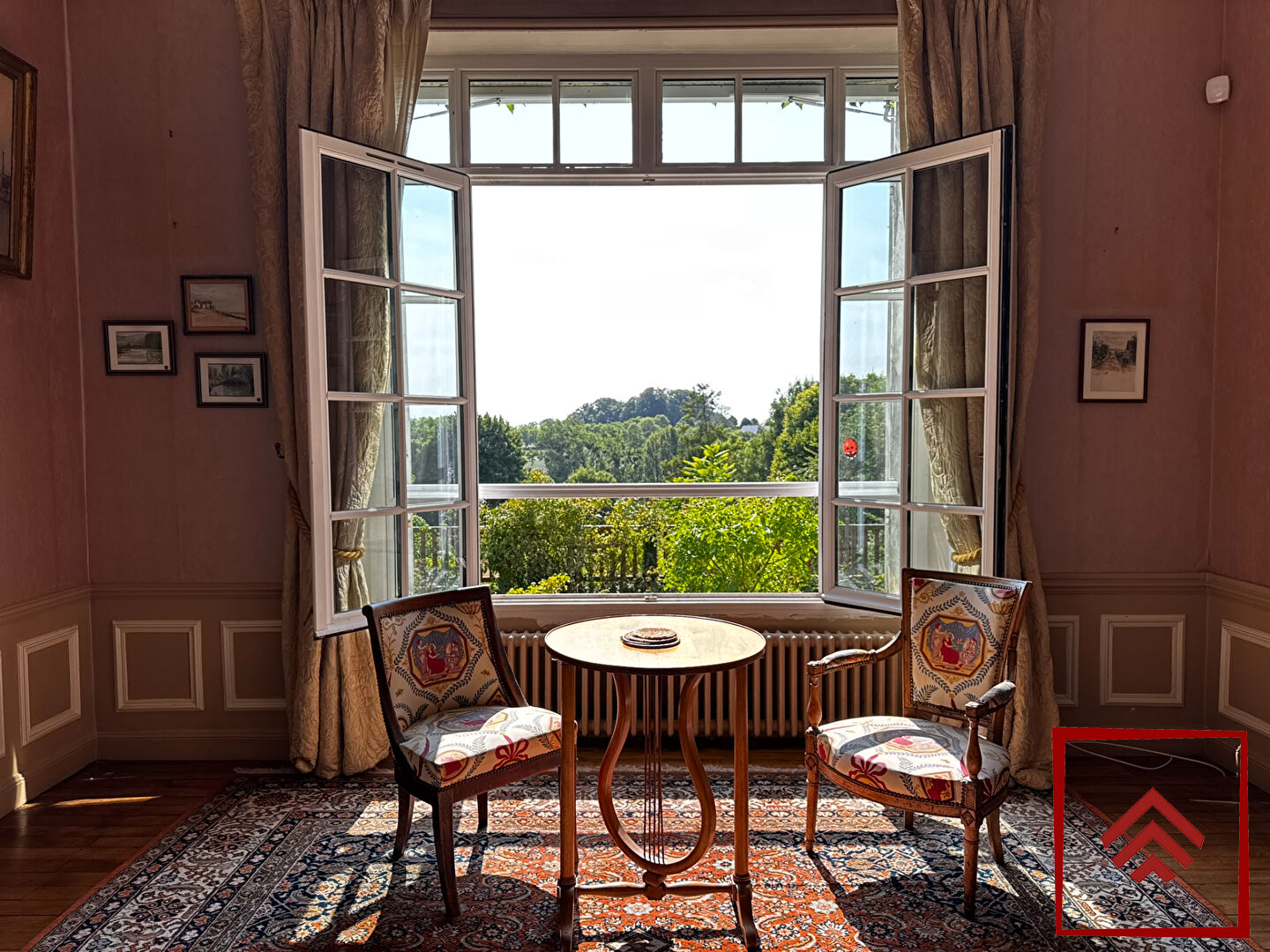 Demeures du Perche et de Normandie vous présente « La Magnifique », une demeure d'exception située au coeur de la petite cité de caractère de Mortagne-au-Perche. Unique et singulière, cette élégante propriété familiale de 463 m², de style néo normand, incarne le raffinement architectural de la Belle Époque. Véritable joyau à sublimer selon vos envies, elle offre un potentiel remarquable. La demeure Au rez-de-chaussée, une vaste entrée dessert une pièce de vie de 53 m², un salon baigné de lumière, un bureau (ou chambre), une cuisine indépendante, une salle à manger prolongée par une véranda, une buanderie, des toilettes indépendantes et plusieurs dégagements. Le premier étage propose six chambres, dont une agrémentée d'un large balcon, deux salles de bains, deux points d'eau supplémentaires, de généreux couloirs et un oratoire qui confère une atmosphère singulière à l'ensemble. Pensé comme un véritable appartement indépendant, le second étage offre quatre nouvelles chambres, une salle d'eau, des toilettes, un bureau et un grand grenier. Sous la demeure, deux caves ainsi que les locaux techniques complètent le bâti. Les dépendances et le parc Indépendante, une dépendance abrite un garage double ainsi qu'un box pour cheval. Dominant son environnement, la propriété s'ouvre sur un parc majestueux de 1,45 hectare, offrant des vues dégagées sur la campagne percheronne et un cadre de vie exceptionnel. Son emplacement privilégié au coeur de la ville permet de profiter pleinement des commerces, écoles et services? le tout à pied. Situation - Commerces et écoles accessibles à pied - Golf et forêt de Bellême à 20 min - Gare SNCF de L'Aigle (ligne Paris Montparnasse / Granville) à 25 min - Paris, Porte de Saint-Cloud, à 2 h via la N12 - Mer à 1 h 40 ? Mont Saint-Michel à 2 h 30 ? Saint-Malo à 3 h - Nombreuses forêts domaniales à proximité, idéales pour la randonnée Bilan énergétique - Consommation énergétique : 246 kWh/m²/an ? D - Émissions de gaz à effet de serre : 18 kg CO?/m²/an ? C Prix 945 000 euros H.A.I. (Honoraires d'agence inclus) - Prix net vendeur : 900 000 euros - Honoraires : 5 % TTC à la charge de l'acquéreur Pour plus d'informations concernant cet ensemble d'exception, contactez nous au 02 33 25 25 44. « Les informations sur les risques auxquels ce bien est exposé sont disponibles sur le site : www.georisques.gouv.fr » (5.00 % honoraires TTC à la charge de l'acquéreur.)
