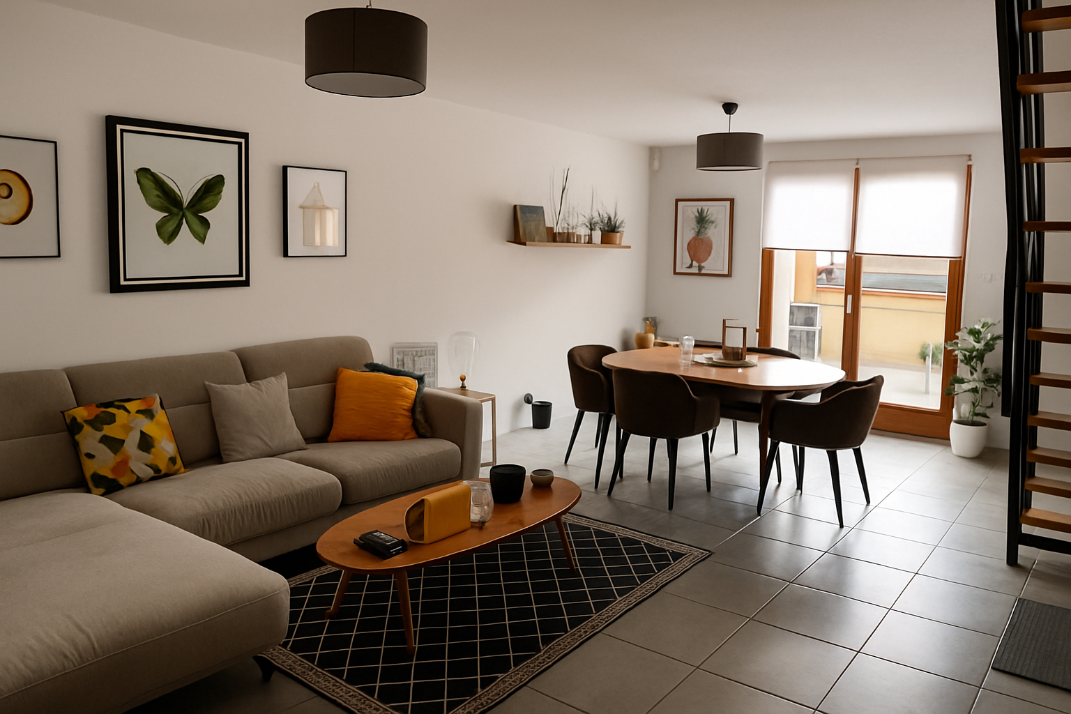 Cette maison jumelée offre un cadre de vie alliant praticité et convivialité, à deux minutes des accès autoroutiers. Au rez-de-chaussée : Entrée ouverte sur un salon-séjour avec accès direct à une grande terrasse pour profiter de l'extérieur, Cuisine moderne ouverte A l'étage : Mezzanine modulable en espace bureau ou dressing Deux chambres, Salle d'eau avec douche et WC chauffage sol pompe à chaleur Annexe pratique attenante intégrant buanderie et espace de rangement pour vélos ou moto Maison fonctionnelle, facile à entretenir, avec un bel espace extérieur Un cadre de vie idéal pour allier confort, praticité et tranquillité ! Contact Evelyne HEYTIENNE 0607069001