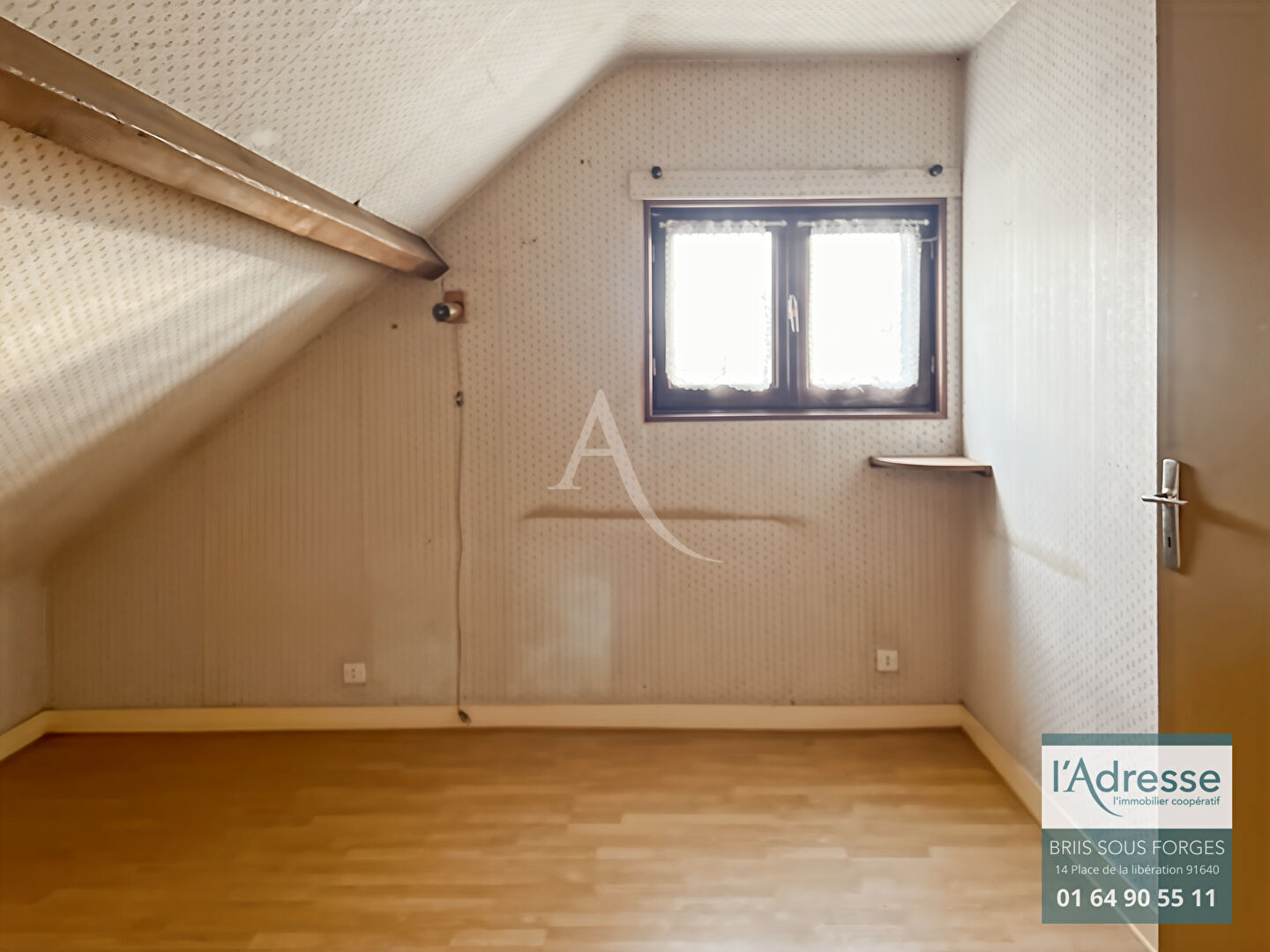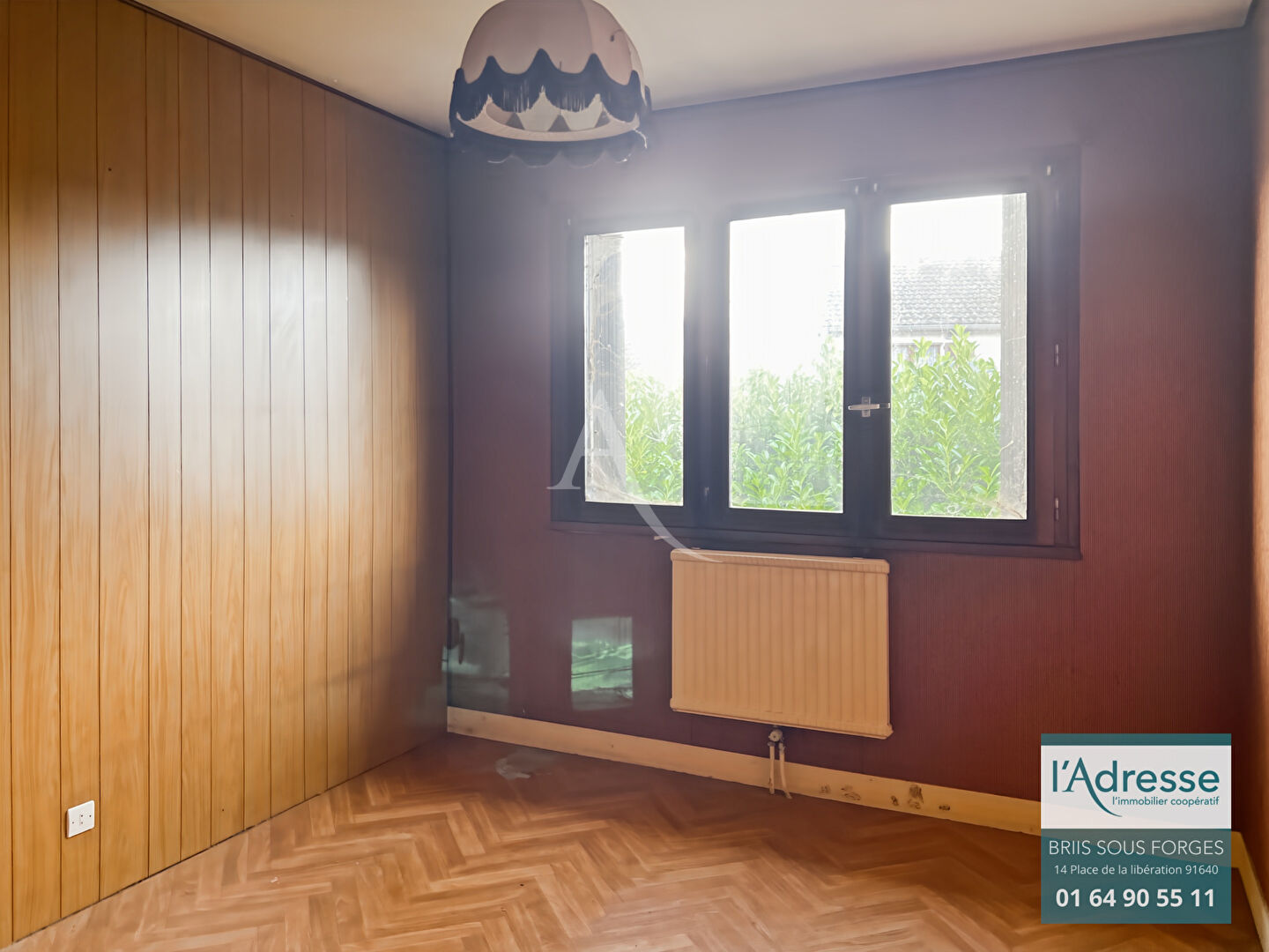 Maison individuelle élevée sur sous-sol total d'environ 100m² habitables avec TRAVAUX DE RENOVATION A PREVOIR, édifiée sur un terrain clos d'environ 559m². Cette maison comprend : Au rez-de-chaussée : Entrée, séjour - salle à manger avec cheminée et donnant sur un balcon, cuisine, chaufferie, 2 chambres, salle de douche et WC. A l'étage : 2 chambre dont une avec un espace point d'eau et grenier isolé et aménageable d'environ 27m² . Sous-sol total : garage, cave et atelier. Quartier pavillonnaire au calme et proche de la nature, à quelques minutes des écoles avec arrêt de bus à proximité immédiate (bus scolaire + navettes TàD GARE AUTOROUTIERE de Briis sous Forges)