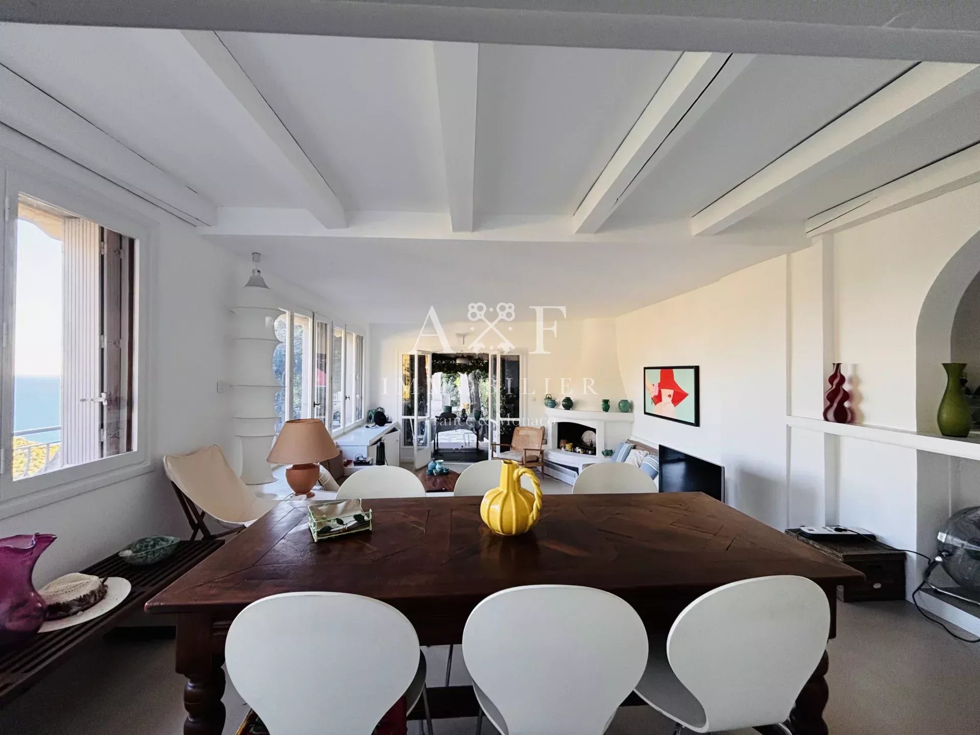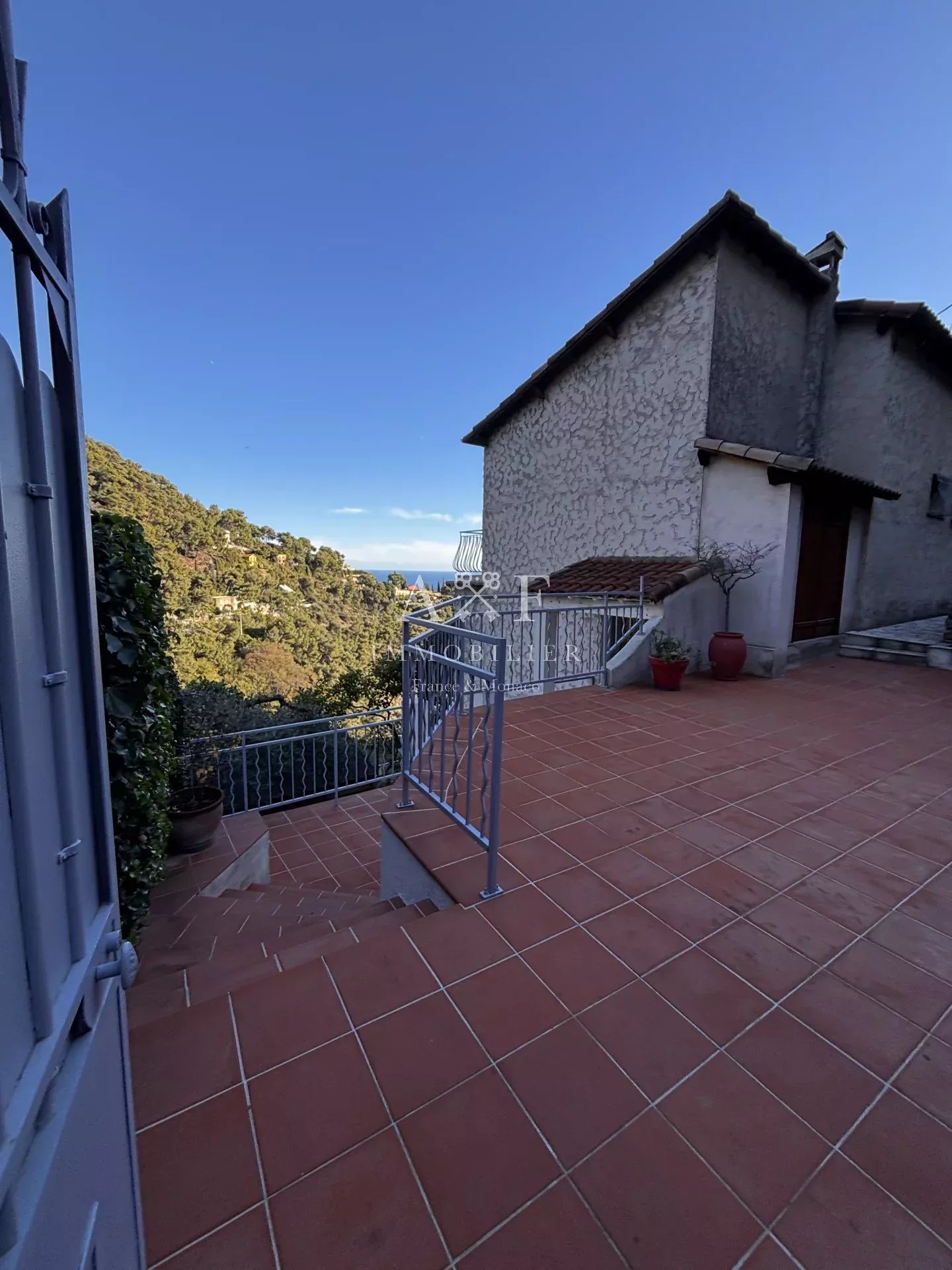 Situé à Roquebrune Cap Martin en direction du vieux village. Un véritable havre de paix. Magnifique maison de 210 m² sur 3 niveaux, terrain de 1300 m² arboré en restanque. Vue dominante et imprenable .... elle allie confort et élégance. Entièrement clôturé Composée comme suit : Au rez-de-chaussée : Vaste séjour / salle à manger avec cheminée, vue dégagée, accès terrasse avec vue mer, une cuisine équipée, une chambre, une salle de douches. À l'étage : 3 chambres, une salle de douches, une salle de bains. En rez-de-jardin : une dépendance aménagée + un deux-pièces indépendant. Cabanon de jardin Piscine Accès piéton