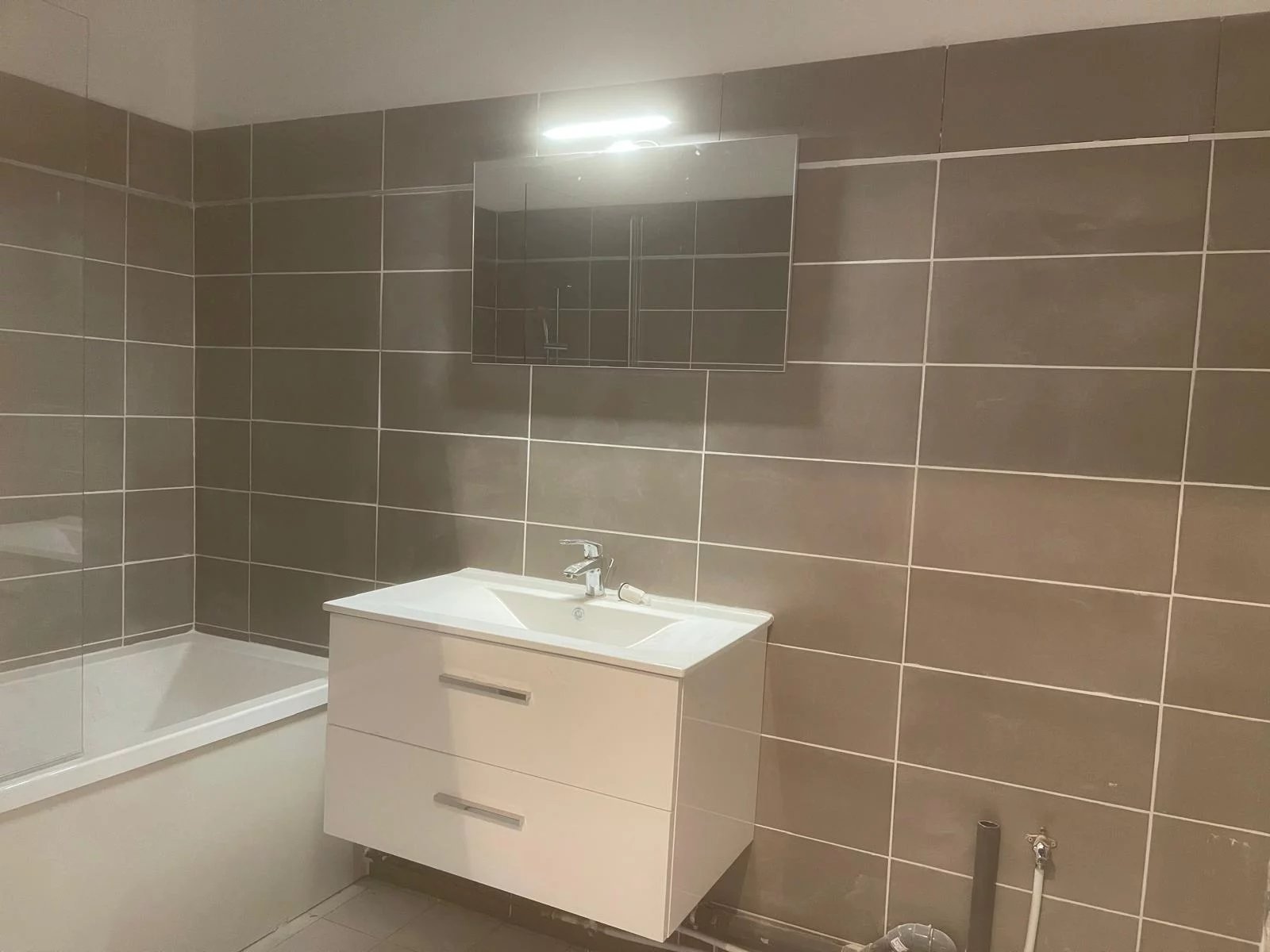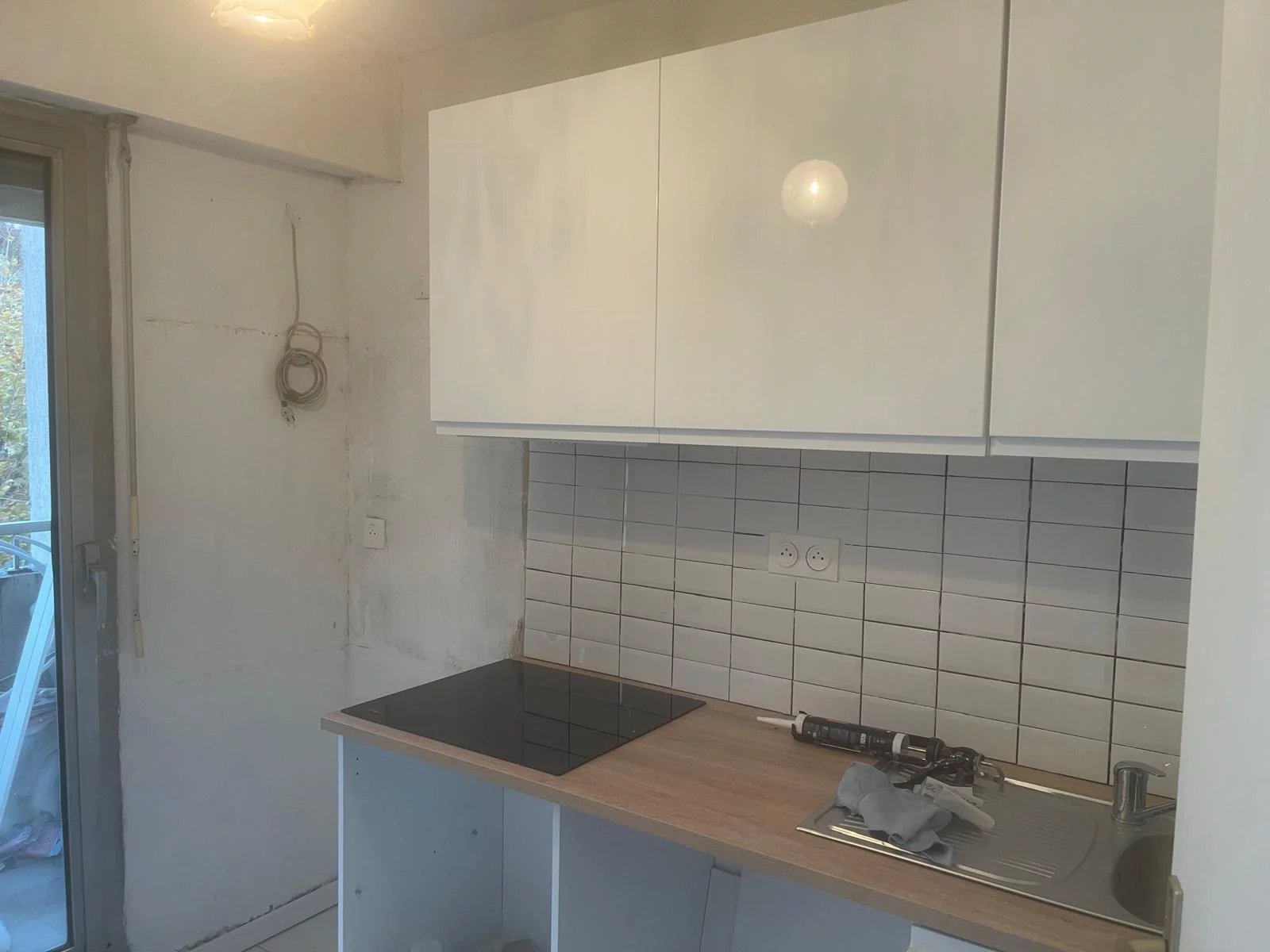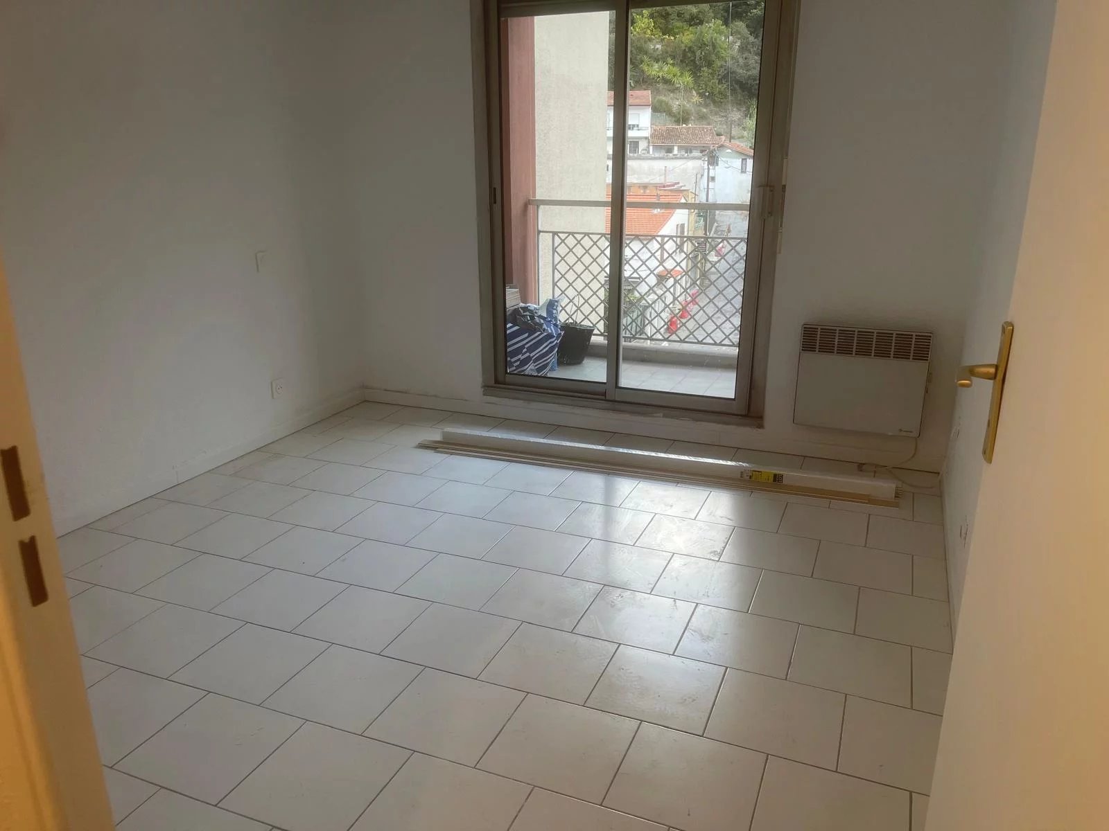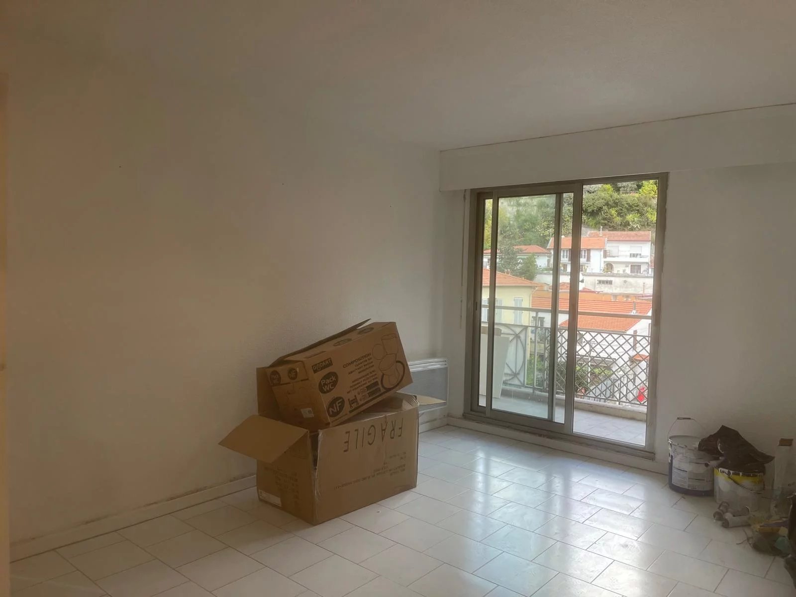 Appartement de 32m2 avec une belle terrasse qui fait toute la longueur de l'appartement accessible depuis la chambre salon et cuisine, le tout fermé par des baies vitrée en double vitrage.