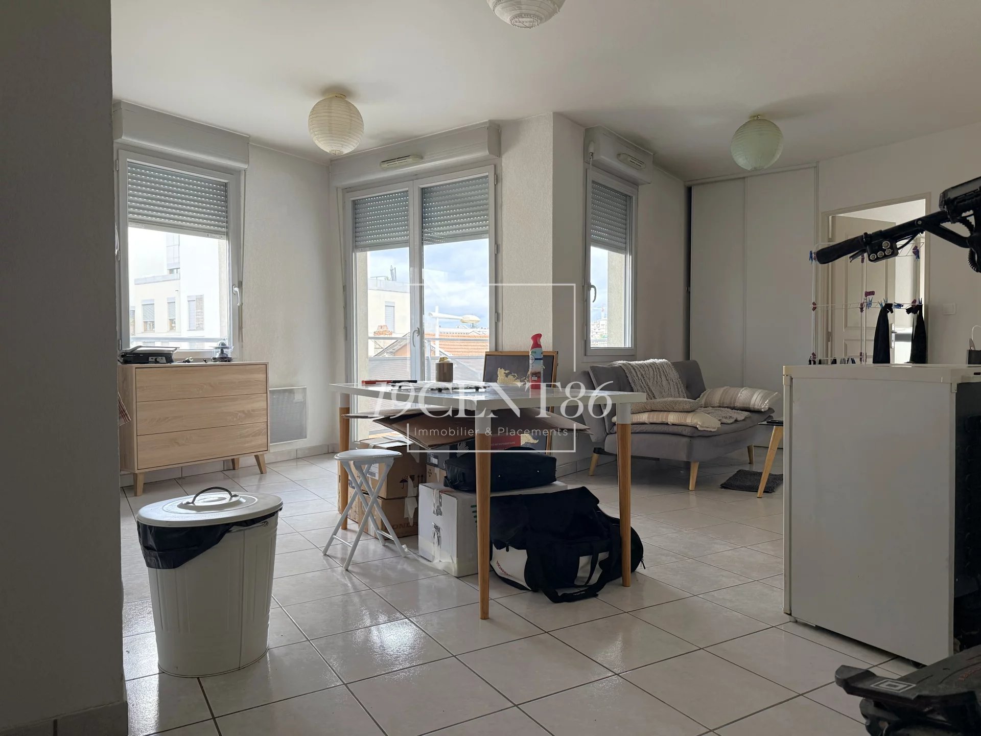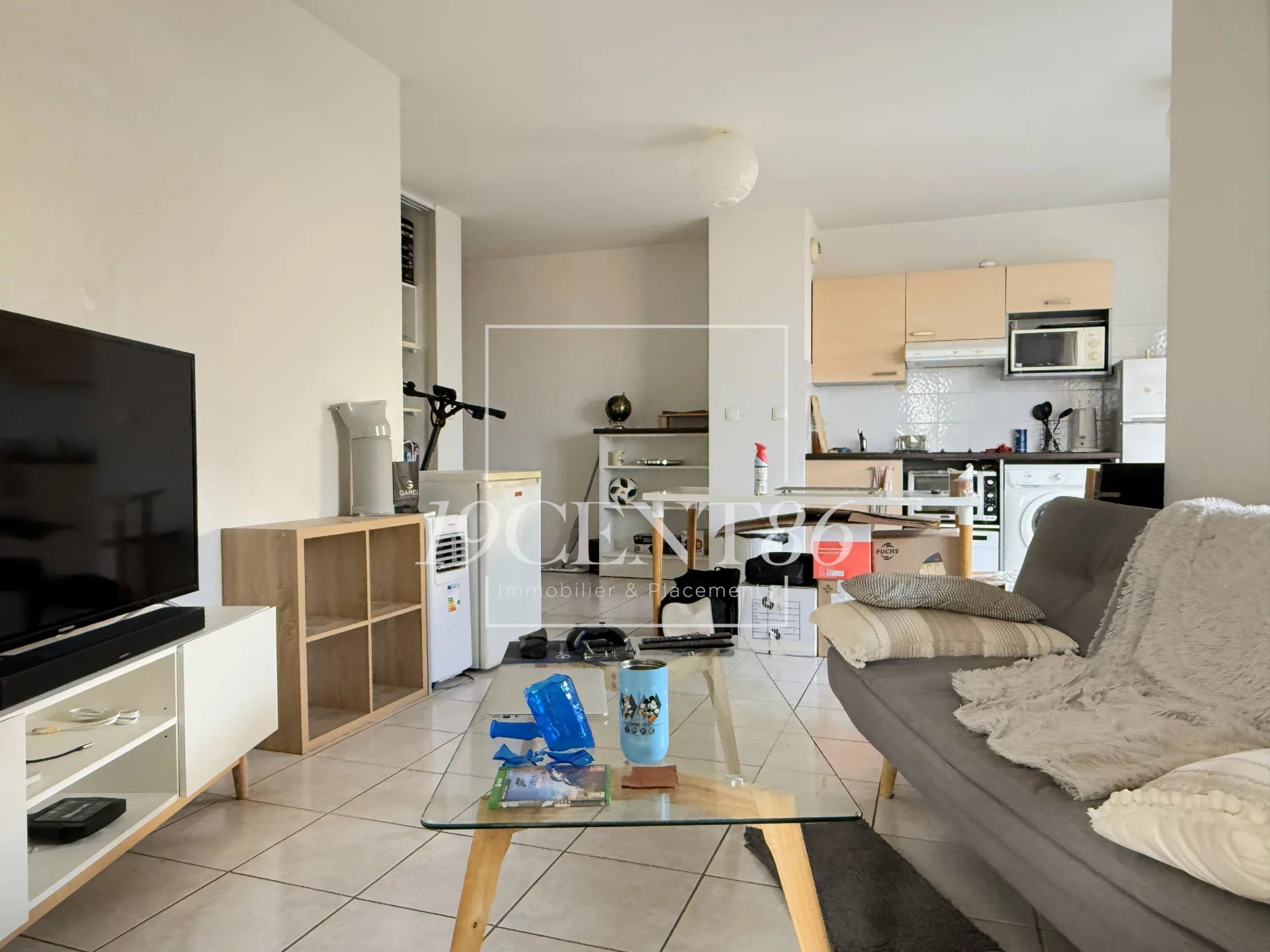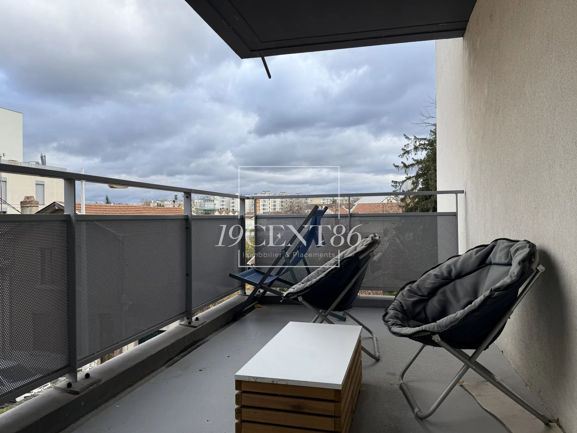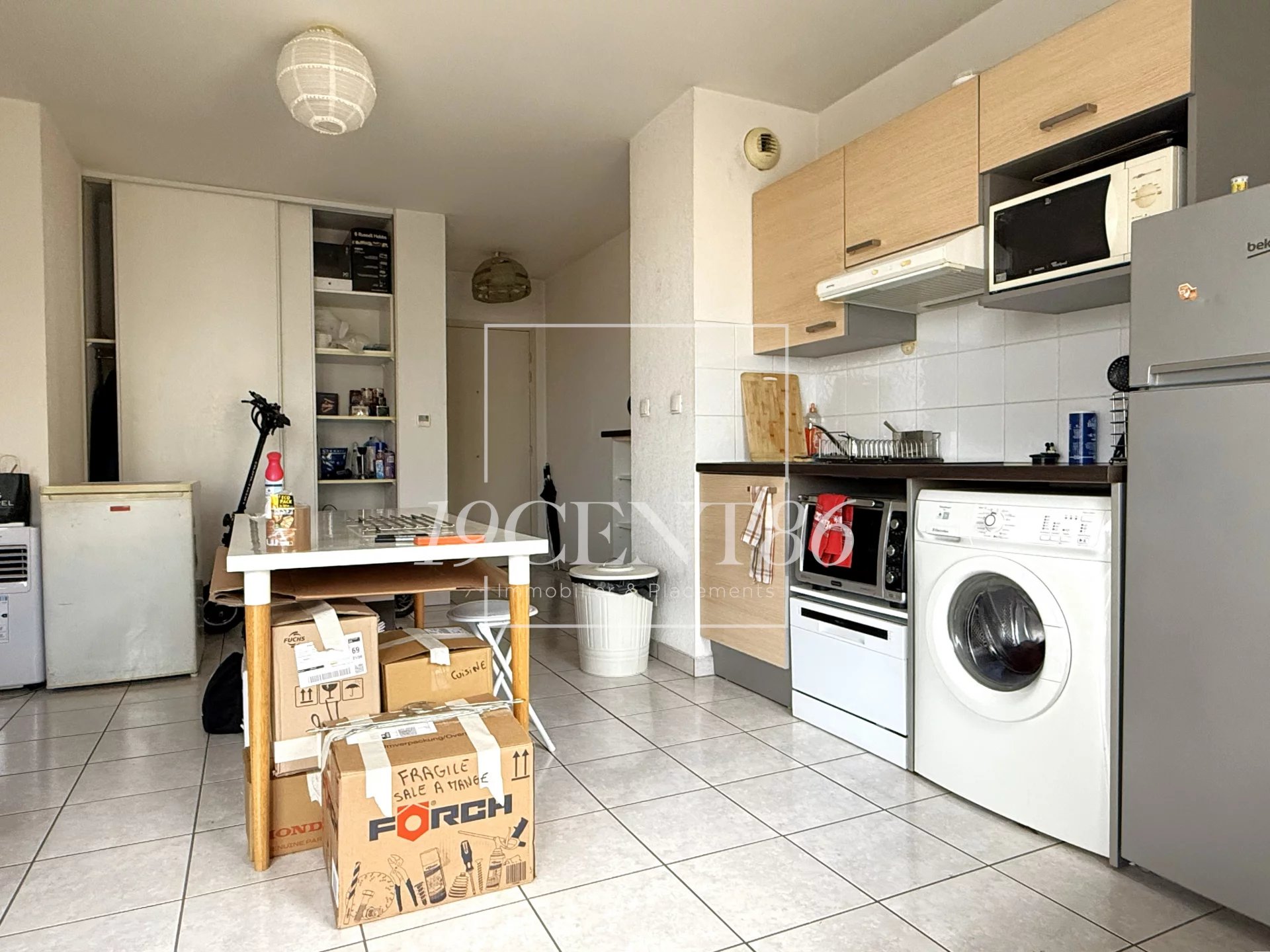 69008 LYON – 140 RUE VILLON – APPARTEMENT DE TYPE T2 AVEC BALCON ET PARKING EN SOUS-SOL. L’Agence 19CENT86 Immobilier & Placements vous propose cet appartement de type 2, en bon état, d’une surface de 43,26 m² habitables, situé au 2ème étage avec ascenseur, d’une copropriété de 2010. Il se compose d’une pièce à vivre de 28.37 m² avec placards, donnant sur un balcon de 7,78 m², d’une chambre avec placard donnant accès à la salle de bains avec WC.