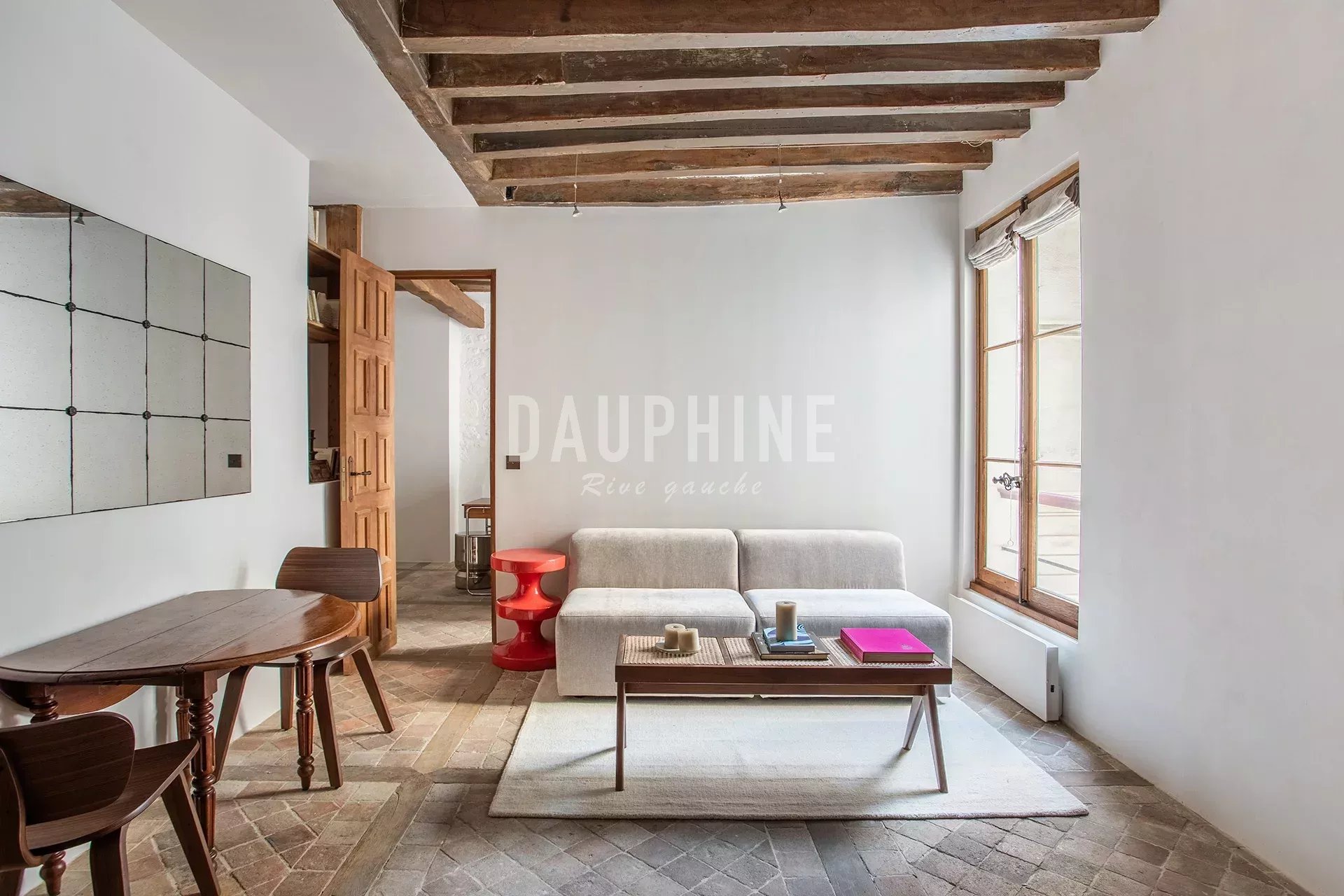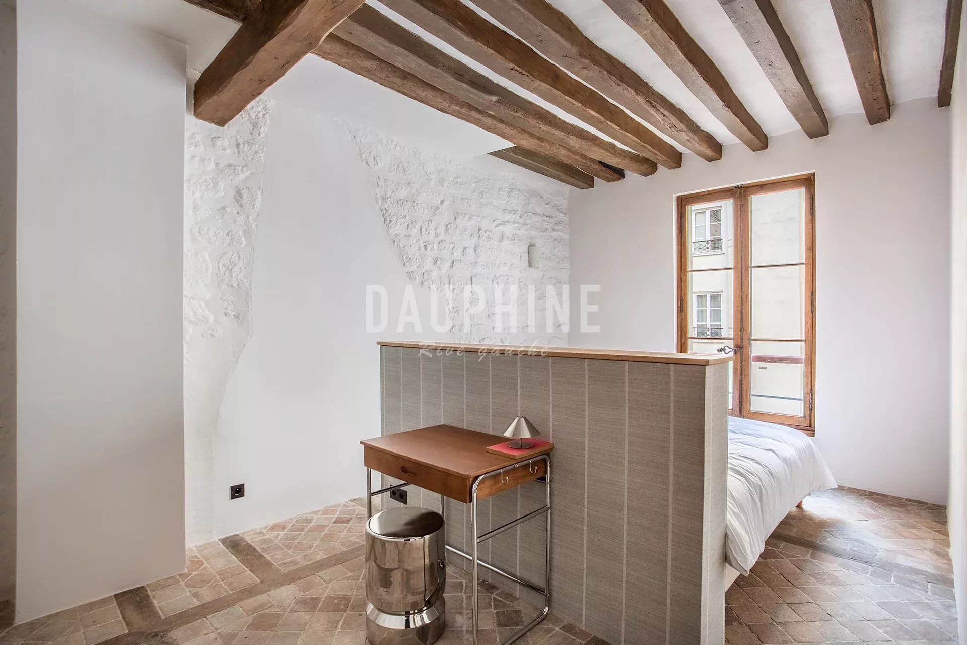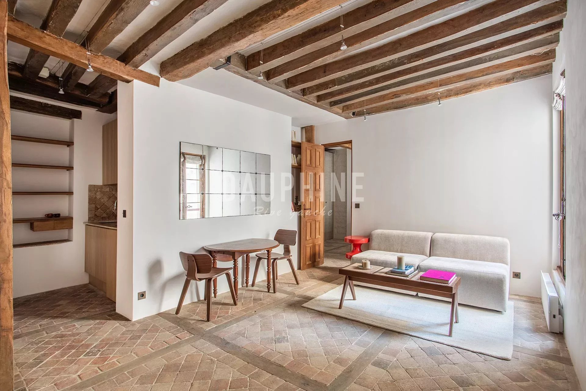 Situé dans une charmante copropriété sur cour, au cœur du quartier Saint-Thomas-d’Aquin, cet appartement au 2ᵉ étage avec ascenseur bénéficie d’un calme absolu et d’une rénovation contemporaine mettant en valeur le caractère authentique du lieu: poutres apparentes, murs en pierre et sols d’époque.