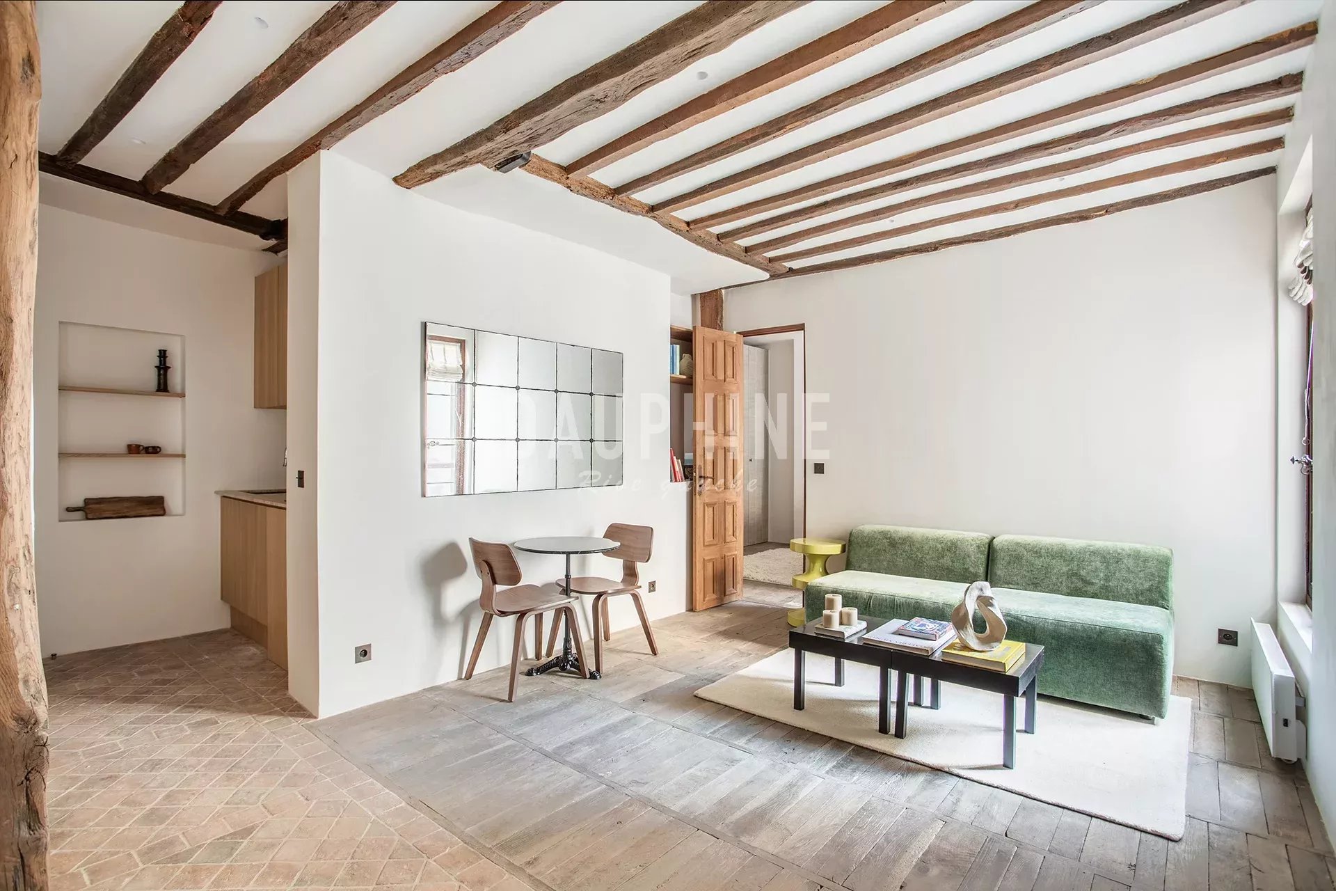 Situé dans une charmante copropriété sur cour, au cœur du quartier Saint-Thomas-d’Aquin, cet appartement au 3ᵉ étage avec ascenseur bénéficie d’un calme absolu et d’une rénovation contemporaine mettant en valeur le caractère authentique du lieu: poutres apparentes, murs en pierre et sols d’époque.