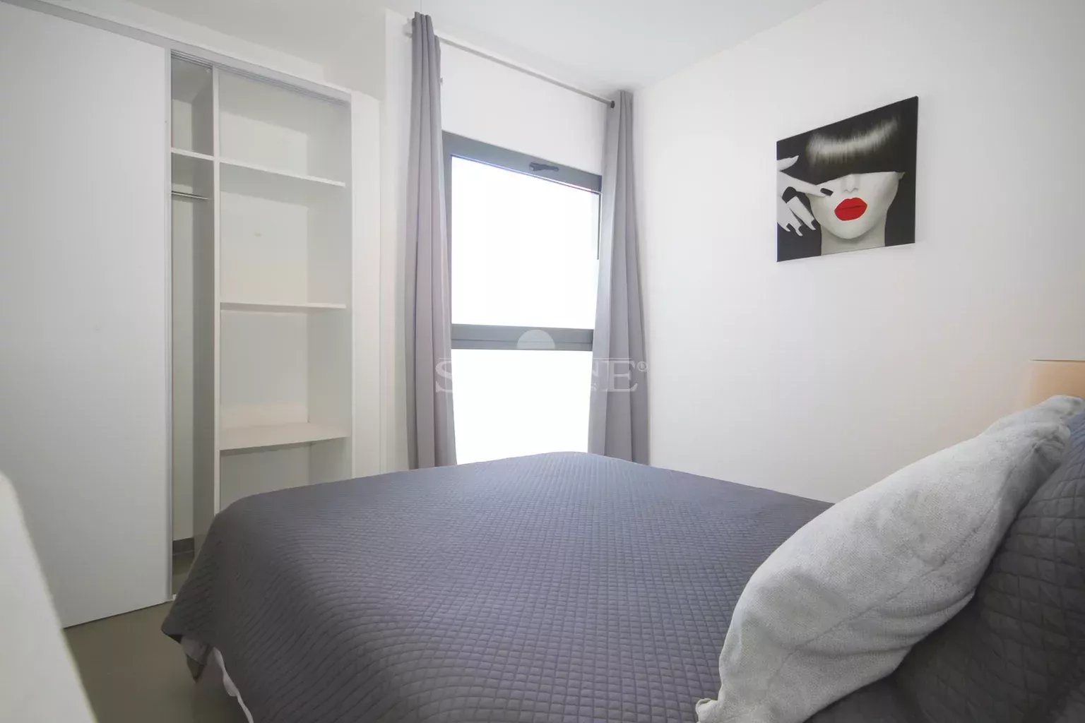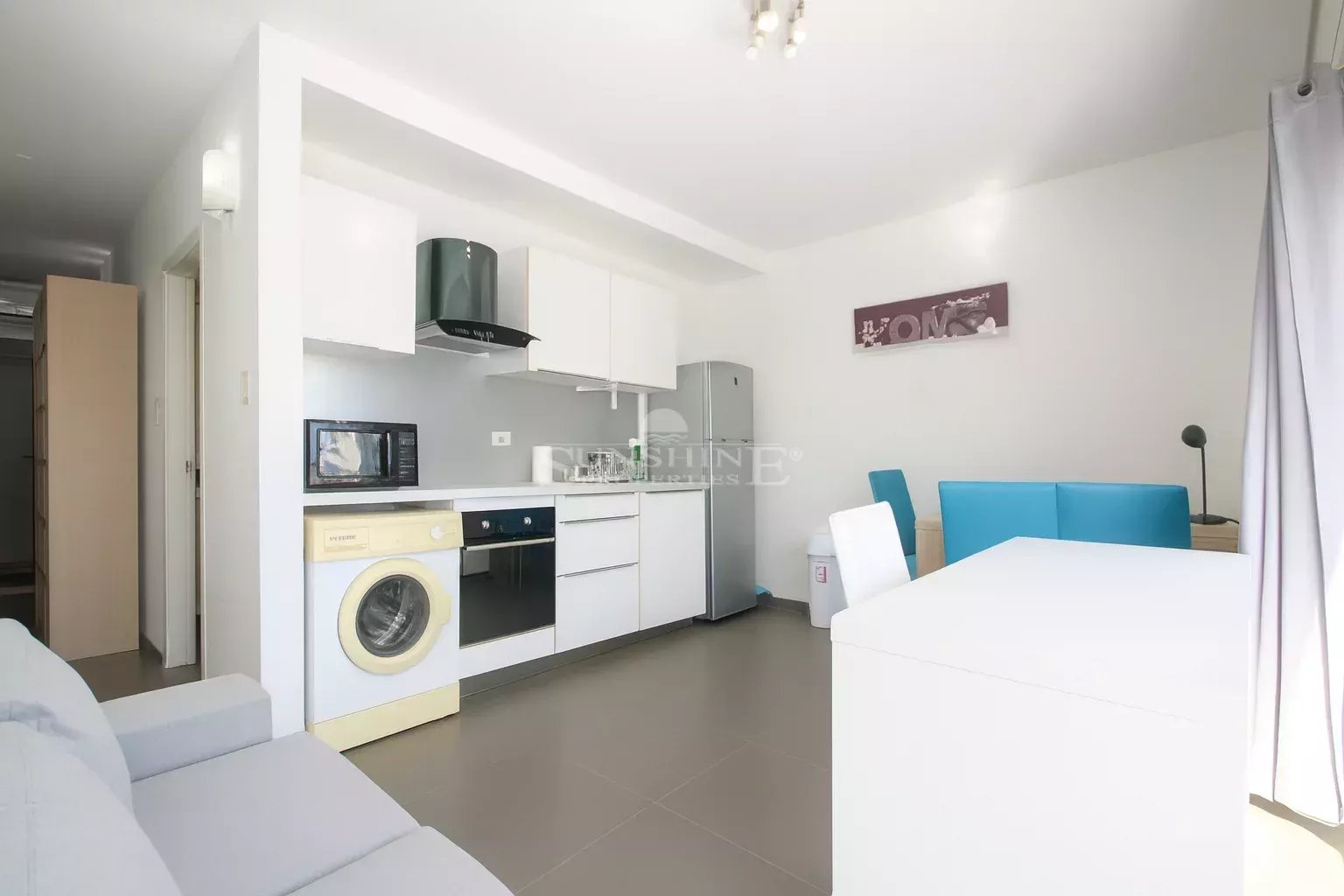 As you walk into the living area you are greeted with a modernly decorated and spacious living room and large sliding doors that flood the room with natural lighting. Seamlessly connected to the living area, the kitchen is fully equipped with modern appliances. The modernly designed bathroom is right down the hallway. The bedroom is quite spacious with a charming style and a builtin closet.