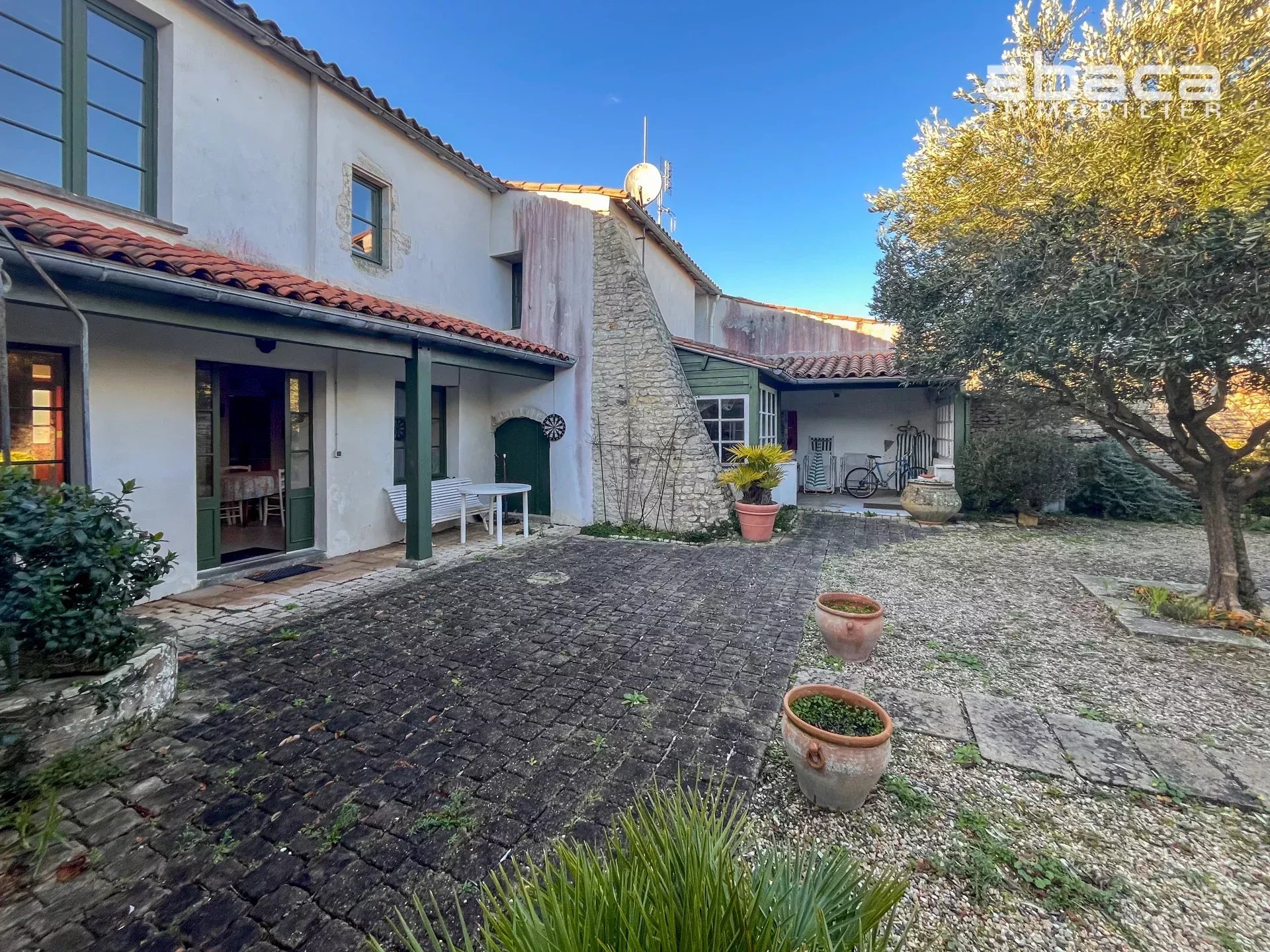 Maison de village avec du charme, jardin agréable à l'abri des regards, exposé Est Sud : pièce de vie avec cheminée, une cuisine, salle de douche, wc, 4 belles chambres à l'étage avec salle de douche et wc. Grand garage, local vélos, atelier, cuisine d'été avec coin repas. Les informations sur les risques auxquels ce bien est exposé sont disponibles sur le site Géorisques : www.georisques.gouv.fr