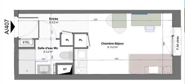 Un bien meublé de 19,7 m² dans une résidence étudiante moderne