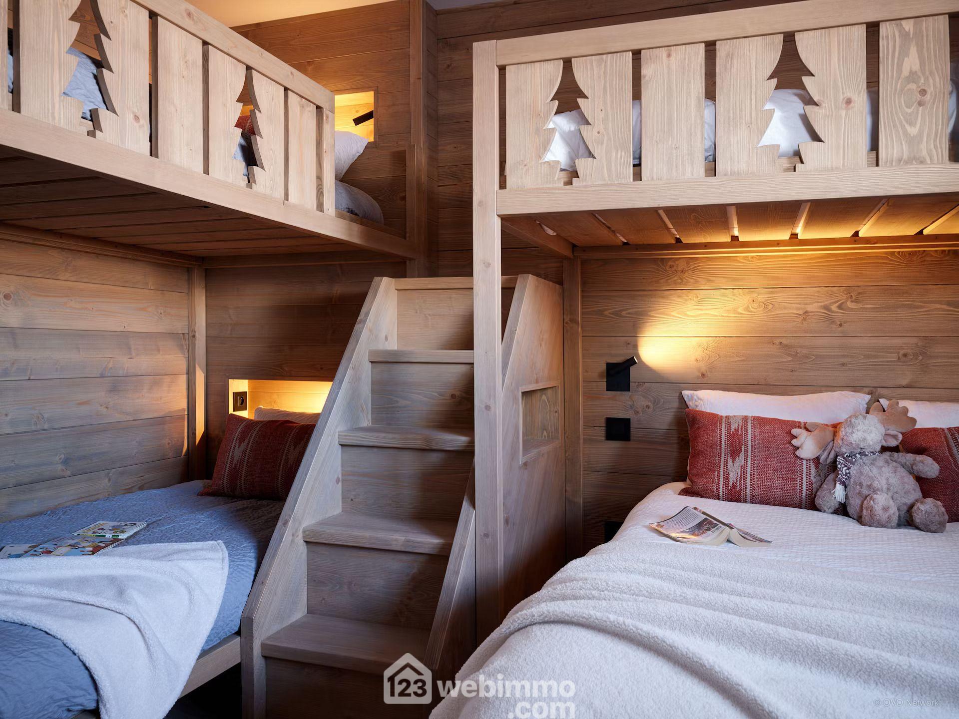 Avec 310 m², le chalet propose de beaux volumes, pensés pour partager des moments privilégiés entre proches, en toute élégance, dans un confort total. Il dispose de six chambres, six salles d'eau, d'un espace loisirs, d'une cuisine ouverte sur le séjour, d'un ski-room équipé de sèche-chaussures et de deux garages doubles.