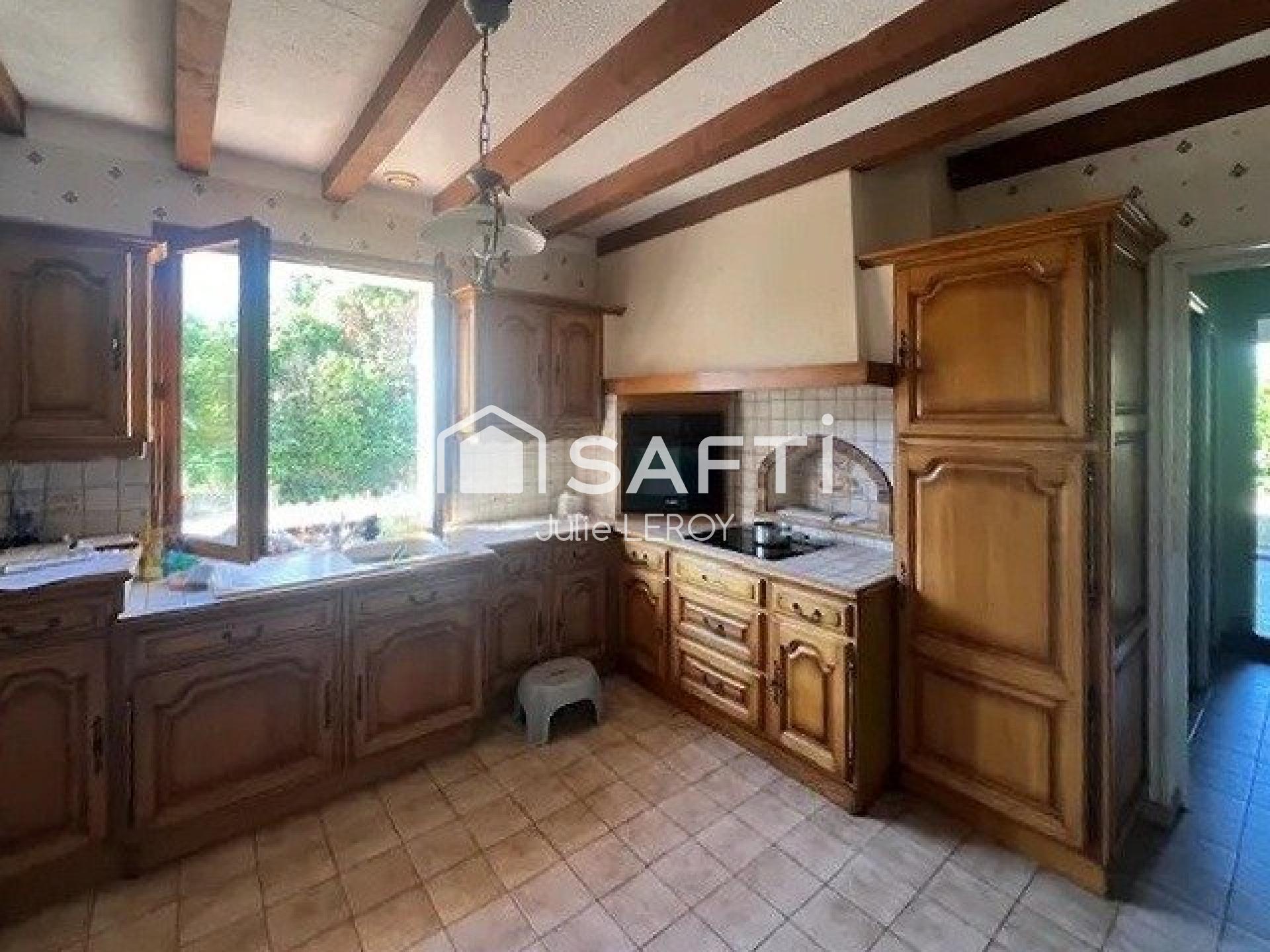 Cette maison de 141 m² comporte 4 chambres, 2 salles de bain et 2 toilettes, idéale pour une famille. Le rez-de-chaussée offre une cuisine aménagée, un salon, 2 chambres et une salle de bain. Vous découvrirez un étage spacieux qui se compose de 2 autres chambres et d'une salle de bain. Prévoyez des travaux de rénovation pour mettre ce bien à votre goût.