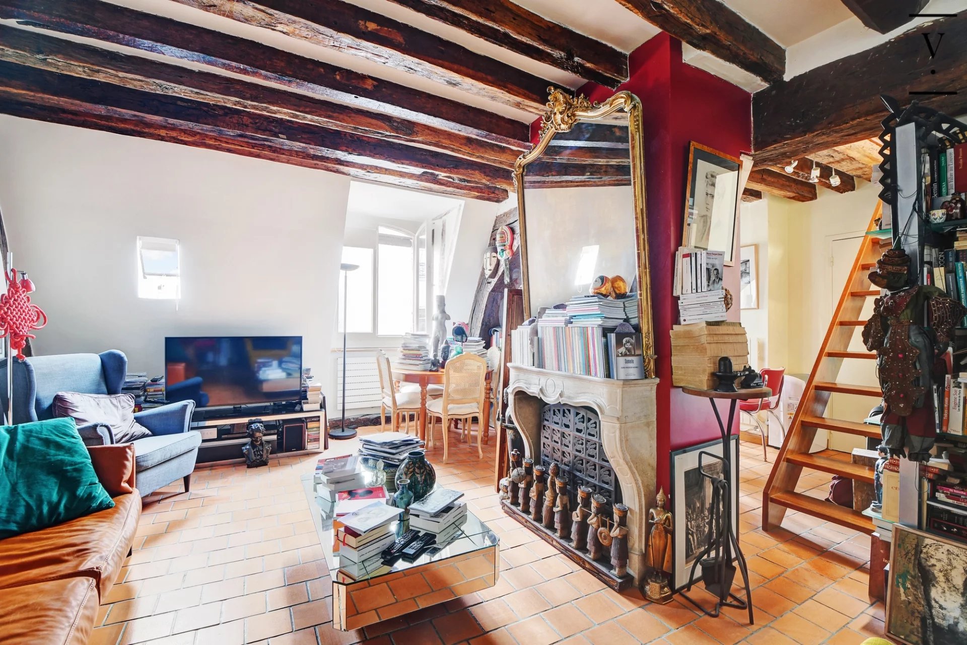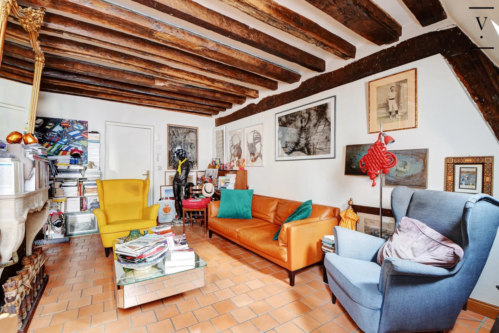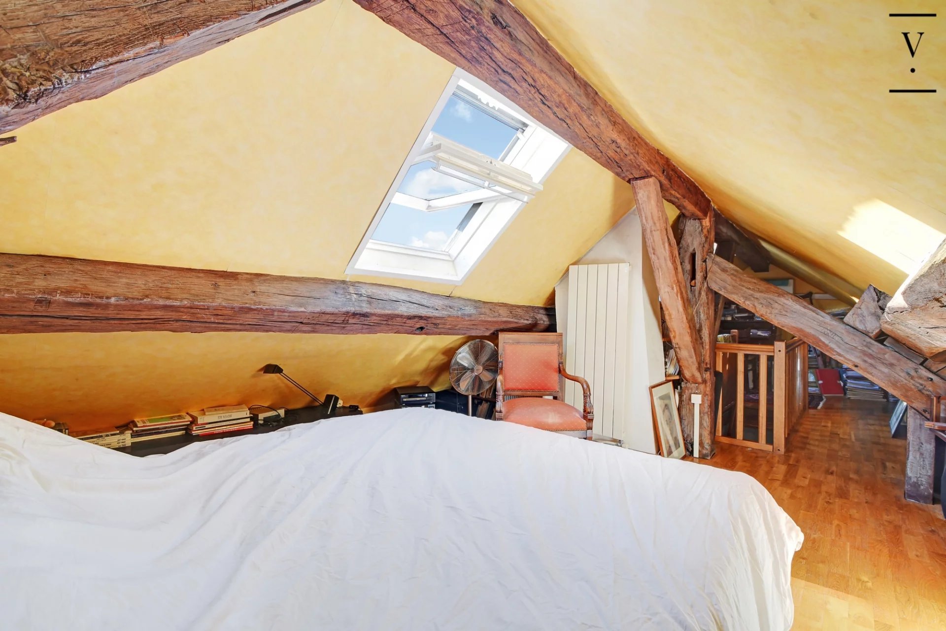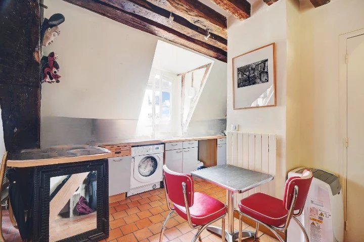 Au coeur du Marais historique, au 3ème et dernier étage d'un très bel hôtel particulier, nous vous proposons ce charmant duplex de 45m2 pondéré. Le premier niveau se compose d'une pièce à vivre s'articulant autour de la cheminée, avec salon et cuisine. Viennent ensuite un dressing et la salle de douche avec wc. A l'étage, nous trouvons un palier pouvant accueillir un espace bureau, puis un espace nuit. Depuis le palier, un grenier. Beaucoup de charme et d'authenticité pour ce lieu chargé d'histoire. Une cave complète ce bien.