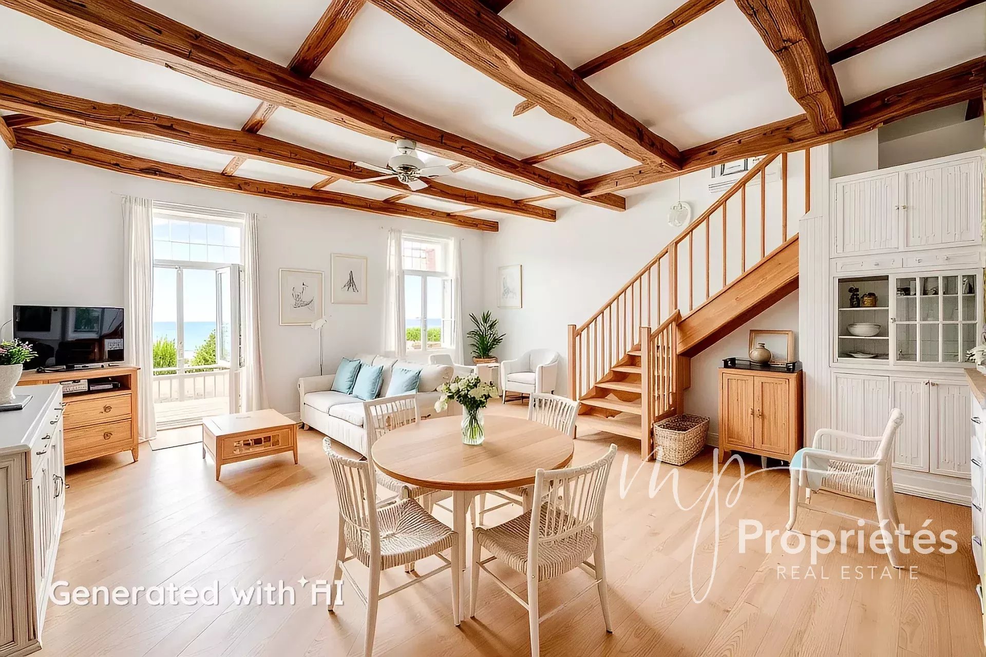 Elle offre, au rez-de-chaussée, une agréable pièce de vie avec cuisine ouverte aménagée ainsi qu’une loggia équipée de toilettes. À l’étage, deux chambres lumineuses viennent compléter l’ensemble, accompagnées d’une salle d’eau.