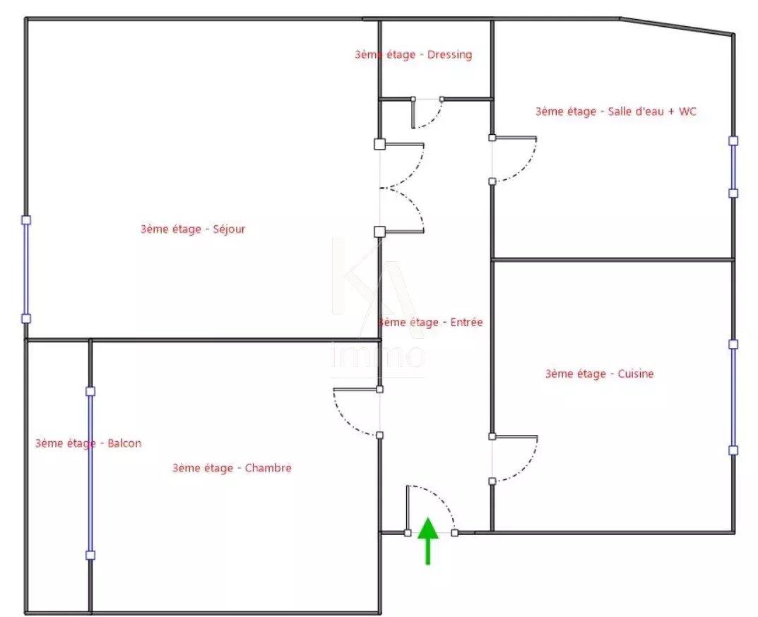 Ce bel appartement se compose d'une entrée avec rangements, d'une magnifique pièce de vie avec son balcon filant, d'une grande chambre à coucher, d'un espace dressing, d'une belle cuisine indépendante semi équipée et d'une salle de douche avec w.c.