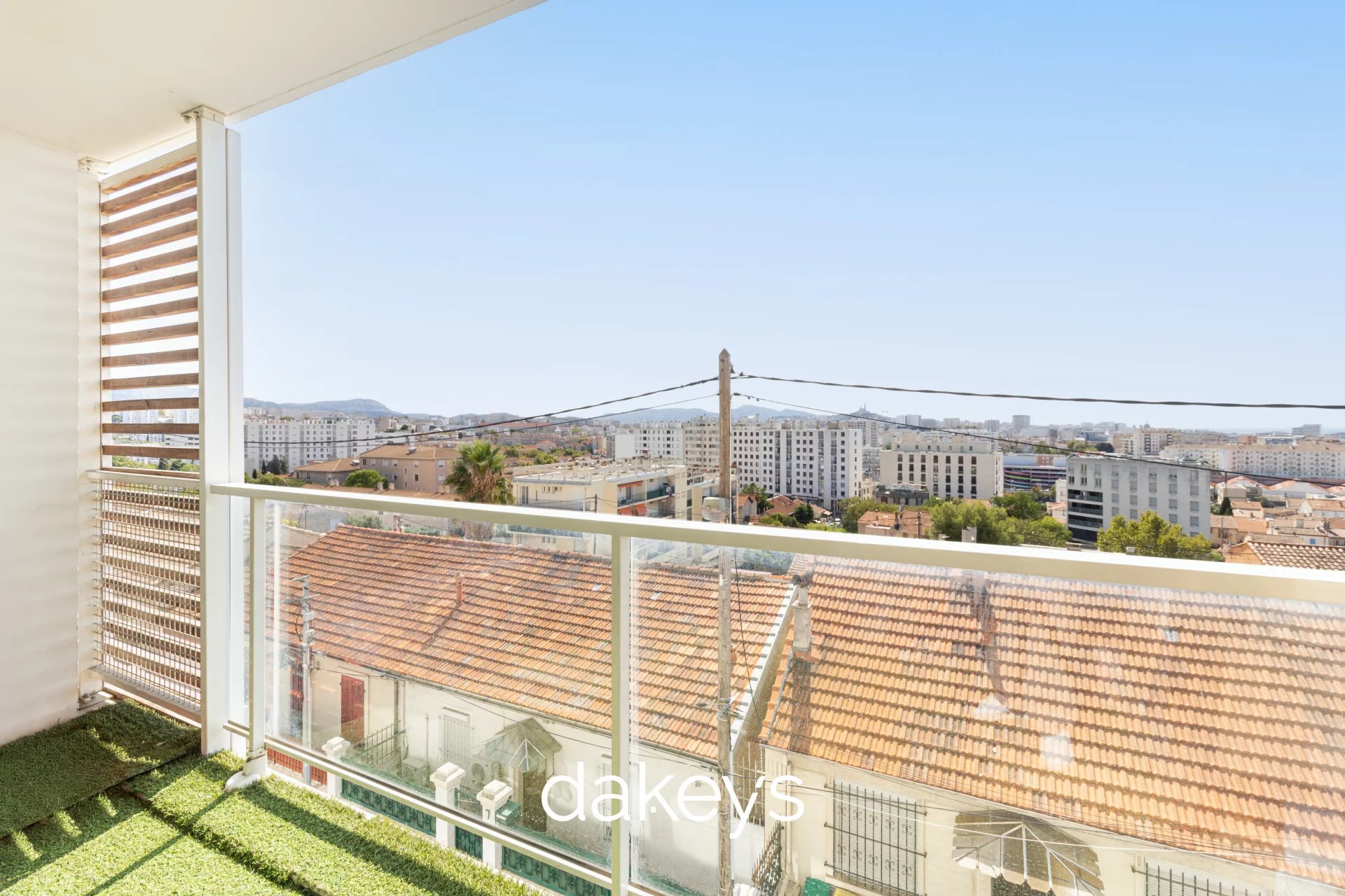 La terrasse de 14,21 m², exposée plein sud et sans vis-à-vis, offre une vue dégagée exceptionnelle : la mer d’un côté, Notre-Dame-de-la-Garde de l’autre un véritable coup de cœur.