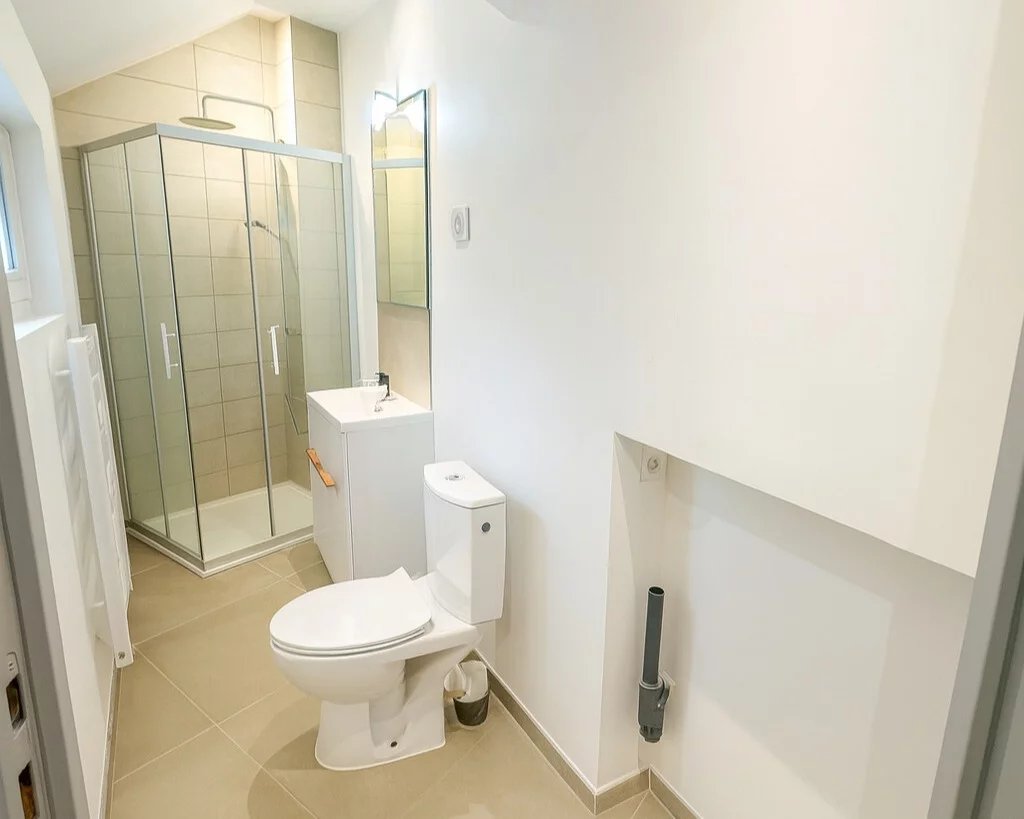 Situé dans un environnement calme à Jouy-sur-Morin, venez découvrir ce charmant T2 rénové avec mezzanine, bénéficiant d’une grande cour privative d’environ 80 à 90 m² et de la possibilité de stationner deux véhicules, dont un emplacement partiellement couvert côté garage. Cette charmante maison de 35 m² + 13m² de mezzanine non comprise dans la surface habitable est parfaite pour un célibataire ou un couple. Elle offre deux pièces confortables, dont : - un espace de vie lumineux, agréable et bien agencé avec cuisine ouverte, aménagée et équipée - une chambre - une salle d’eau moderne avec douche, meuble vasque et wc - Une mezzanine idéale pour un espace nuit, bureau ou rangement, d’environ 13m2 (non pris en compte dans la surface habitable) La maison est équipée de fenêtres en PVC à double vitrage, garantissant une isolation thermique et phonique optimale. Vous apprécierez la connexion internet haut débit, idéale pour le travail à distance ou le divertissement. N'attendez plus pour visiter ce bien exceptionnel!