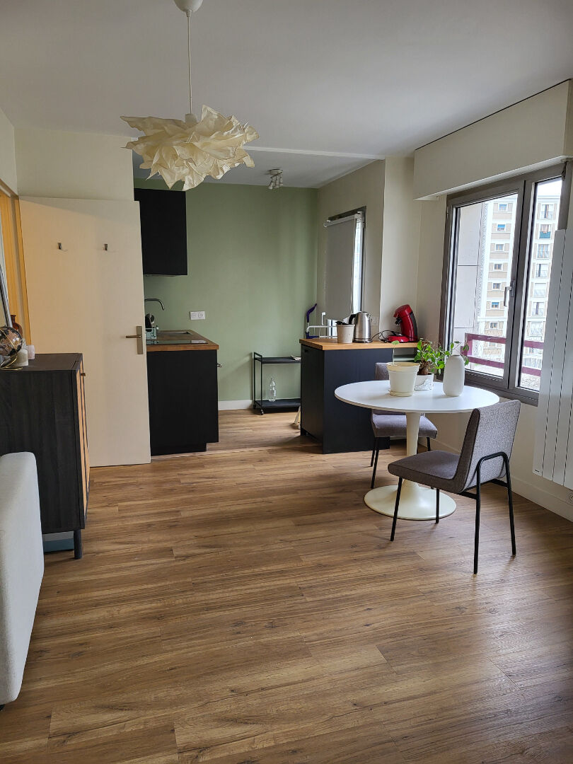 Paris XIX - Logement très lumineux situé avenue Jean Jaurès a proximité du métro porte de Pantin, face au Parc de la Villette, au dixième étage d'une copropriété très bien tenue. Chauffage et eau chaude inclus dans les charges, vue dégagée sur le parc et la Philharmonie de Paris. Entrée avec placards, WC indépendants, dégagement avec placards de rangements, cuisine semi-ouverte sur le séjour entièrement équipée et aménagée, séjour avec canapé convertible et table, chambr