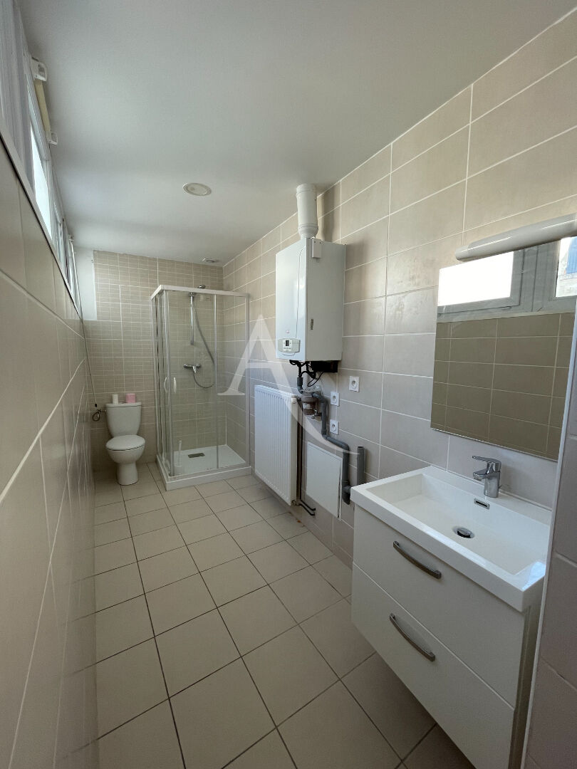 Maison de ville avec cour. Comprenant : un séjour-salon avec cuisine ouverte, trois chambres, une salle d'eau et un wc supplémentaire avec lavabo Chauffage au gaz de ville.. Stationnement situé à deux pas. Libre de suite. REF : N3729
