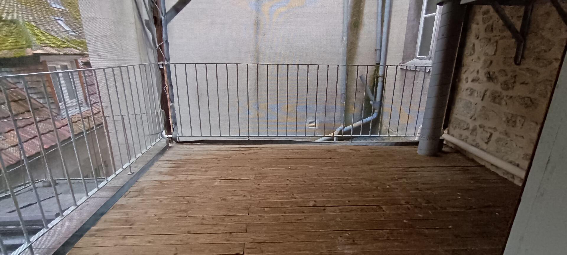 Appartement centre ville Aubusson, en duplex avec terrasse, 1 chambre, mezzanine et bureau, double vitrage, sol parquet.