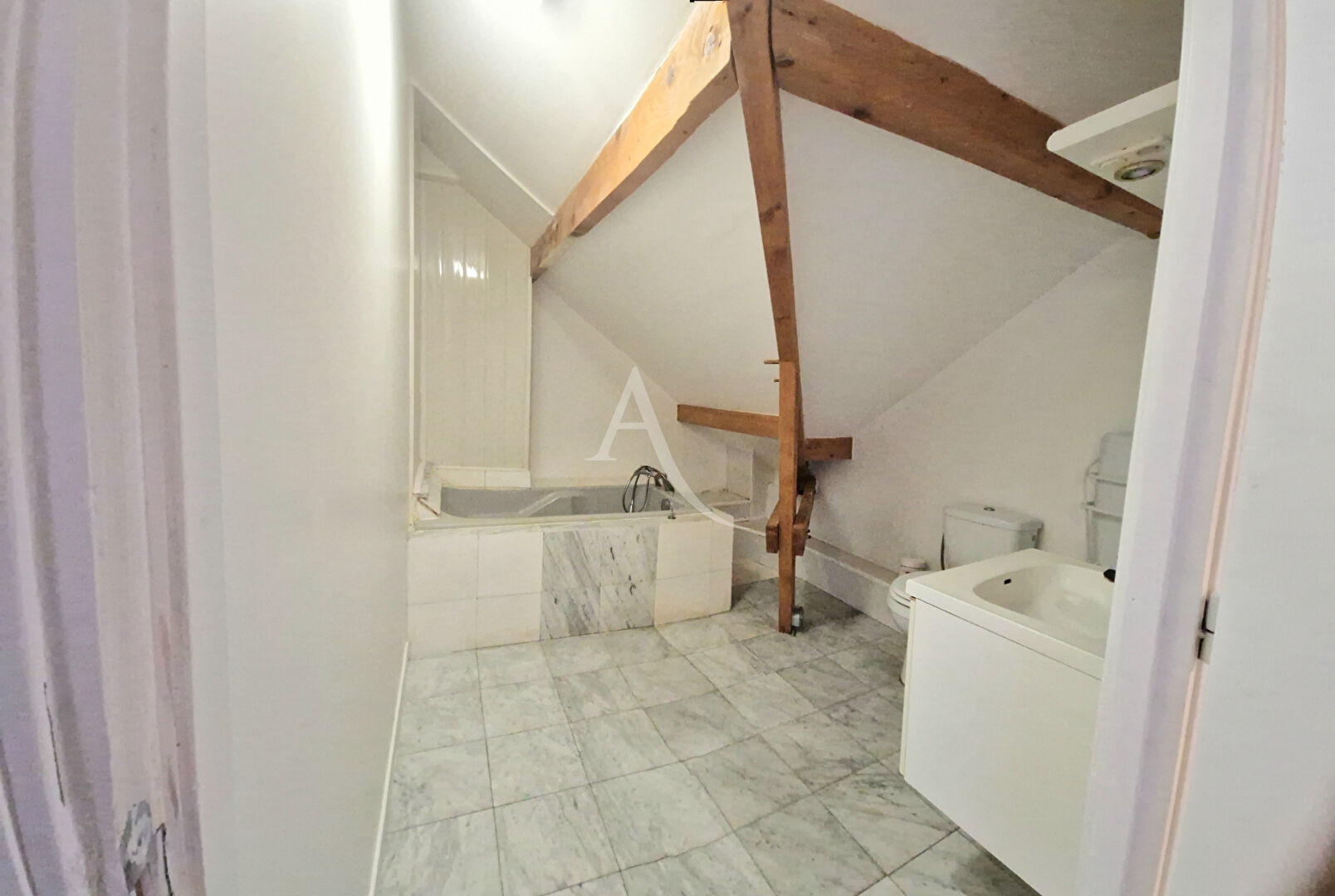 A LOUER. Dans quartier pavillonnaire, au 2ème étage d'une maison, 2 pièces de 95,21 m² au sol, 56,37 m² habitables : Double séjour avec cheminée de 30,13M2 (43M2 au sol) , une chambre de 12,43 M2 (23M2 au sol, chambre semi ouverte), cuisine aménagée et semi équipée, salle de bains avec WC. Dressing latéral de 3,86M2 ( 13M2 au sol). Bel appartement atypique sous combles. Cave. D Disponible le 22/12