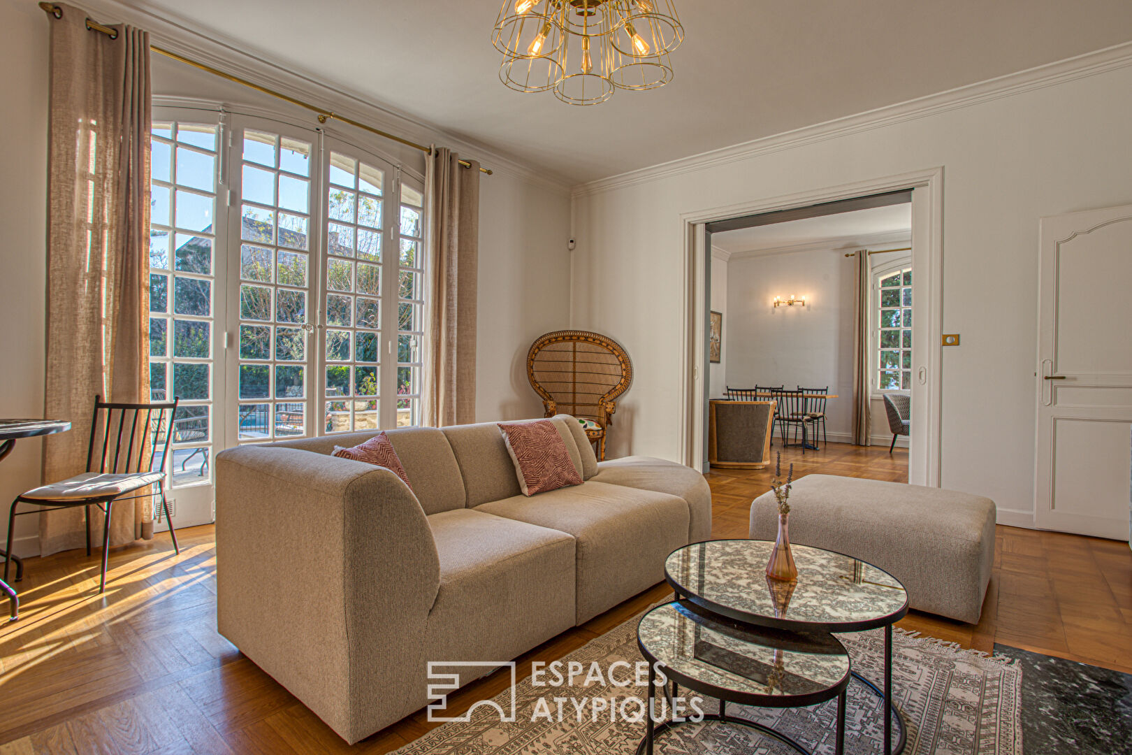 Une adresse rare à Orange, ancienne cité romaine au riche patrimoine historique et architectural. Cette magnifique Bastide provençale de 350 m² sur une parcelle paysagée et arborée, avec sa piscine, incarne l'élégance et le charme intemporel. Entièrement rénovée avec goût, cette propriété de prestige offre un cadre de vie exceptionnel, propice à la sérénité. La grande entrée donne le ton, menant vers un espace de réception de près de 80 m² composé de trois pièces en enfilade, deux salons et une salle à manger, toutes largement ouvertes sur la terrasse et le jardin. Les volumes généreux, la luminosité et la belle hauteur sous plafond en font un lieu de vie d'une grande élégance. Une cuisine indépendante, entièrement équipée et son arrière cuisine complètent ce niveau. Depuis l'entrée, un superbe escalier mène au premier étage qui distribue quatre chambres, chacune dotée d'une salle d'eau privative et de toilettes. Le second étage réserve une surprise architecturale avec une cinquième chambre mansardée, disposant également de sa salle d'eau et de toilettes, où la charpente Eiffel apparente est parfaitement mise en valeur. En rez-de-jardin, les annexes offrent un appartement T2 indépendant, une buanderie, plusieurs caves, et un garage, offrant ainsi de belles possibilités pour une activité de chambres d'hôtes. Le jardin, véritable écrin méditerranéen, met en scène une piscine hexagonale invitant à la détente. Cette bastide à Orange est une opportunité unique d'acquérir une demeure d'exception, combinant histoire, prestations haut de gamme et potentiel d'accueil. Un lieu où l'authenticité et le raffinement se rencontrent, offrant un véritable coup de coeur immobilier. DPE : D / GES : B Estimation des coûts annuels d'énergie : entre 4640 euros et 6350 euros Prix moyens indexés sur les années 2021, 2022 et 2023 (abonnement compris) Les informations sur les risques auxquels ce bien est exposé sont disponibles sur le site Géorisques : www.georisques.gouv.fr
