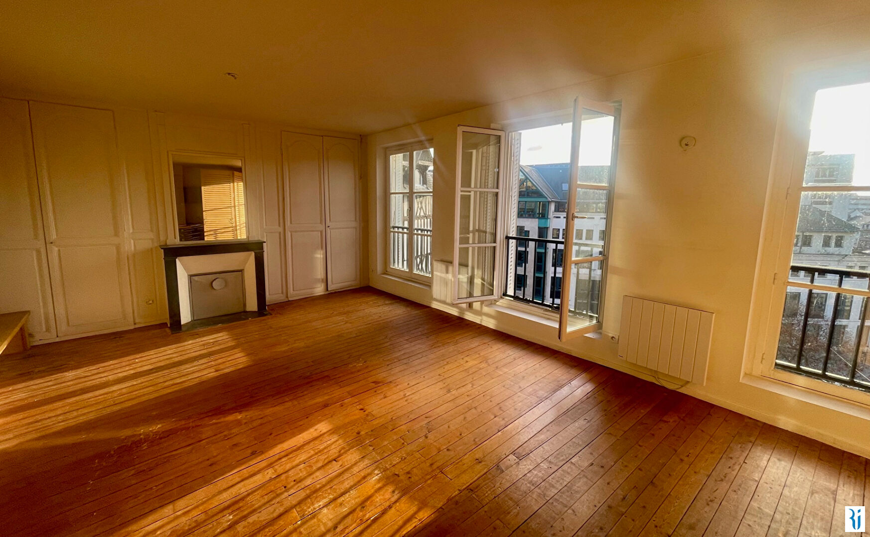 ROUEN HYPERCENTRE PLACE DE LA PUCELLE Dans immeuble pierre de taille, agréable F3, de 85m² avec pièce de vie de 34m² avec coin cuisine aménagée très lumineuse donnant sur la place, 2 chambres, 2 Salles de douches, 2 WC, coin bureau. Les informations sur les risques auxquels ce bien est exposé sont disponibles sur le site Géorisques: 'www.georisques.gouv.fr' (5.17 % honoraires TTC à la charge de l'acquéreur.) Copropriété de 12 lots - dont 7 lots habitation. (Pas de procédure en cours). Charges annuelles : 1680 euros.