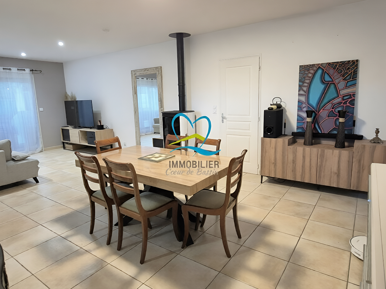 Cette maison de 2004 de plain pied offre un bel intérieur qui mérite votre attention car les volumes sont répartis avec justesse et fonctionnalité. Vous aimerez le joli séjour doté d'une cuisine ouverte toute neuve et d'un poêle à granulés pour un hiver plus doux et puis sa large baie coulissante vers la terrasse abritée pour tamiser les chaleurs d'été tout en se reposant de la vue dégagée des arbres aux alentours. Les trois chambres avec placards, les toilettes séparées et la salle de bains familiale (douche et baignoire) terminent l'espace de vie. Et pour une maison bien ordonnée les indispensables rangements que sont le cellier et le garage. A 1km du centre ville d'ANDERNOS les bains, cette maison sera-t-elle votre futur toit ? Pour le savoir, rien de mieux que de programmer une visite avec votre conseiller IMMOBILIER Coeur de bassin, agence de proximité aux frais légers. (3.56 % honoraires TTC à la charge de l'acquéreur.) Léana DADOLE (EI) Agent Commercial - Numéro RSAC : 988662839 - BORDEAUX.