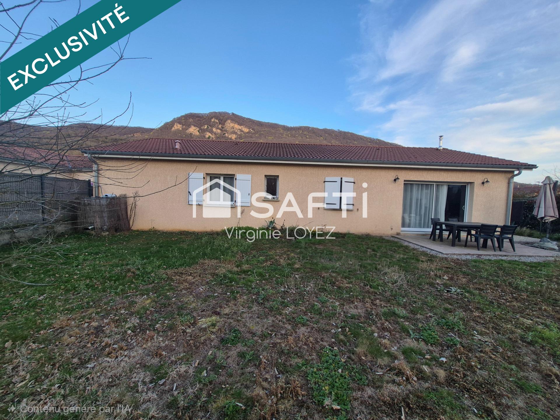 Située dans la charmante commune de Lagnieu (01150), cette maison bénéficie d'un environnement paisible proche des commodités. Idéalement localisée, elle offre un accès facile aux commerces locaux et aux écoles, offrant ainsi un cadre de vie agréable pour toute la famille. Édifiée sur un terrain de 632 m², cette propriété comprend un agréable jardin arboré ainsi que deux places de parking, dont un garage clos. L'extérieur de la maison offre un espace extérieur généreux et pis