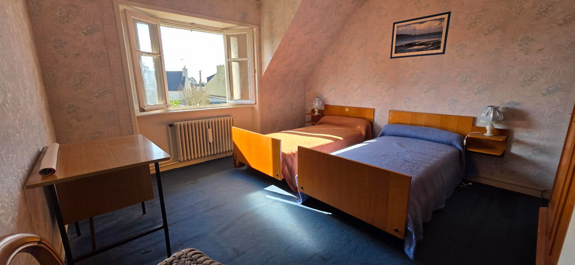 Quimper A vendre maison des années 50 . située entre le centre ville et l hôpital, ce bien volumineux et de bonne facture vous propose : une belle pièce de vie sur parquet exposée sud, une cuisine, 3 chambres, un bureau, salle d'eau, wc, un sous sol complet avec garage cave et pour finir des combles . Le tout sur un beau jardin de 540m2 (5.31 % honoraires TTC à la charge de l'acquéreur.)