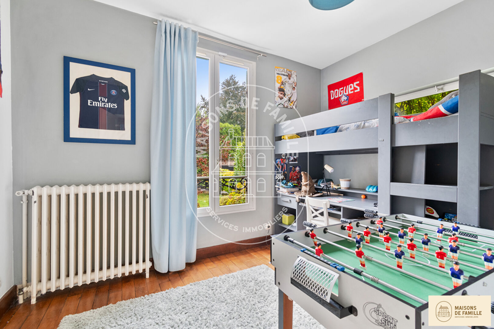 Exclusivité - Maisons de Famille Immobilier, l'expert de la vente de maisons dans l'ouest parisien. BOUGIVAL - CÔTEAUX, à la limite de la Celle-Saint-Cloud, dans un cocon de verdure sans vis à vis, nous vous présentons "Annabelle", une maison de 160m2 habitables et 250m2 au sol, construite sur un terrain plat d'un peu moins de 500m2. Elle se compose de 3 niveaux : Au rez-de-chaussée, un grand séjour lumineux avec espace dinatoire et cuisine ouverte donnant directement sur le jardin exposé sud, un patio, 3 chambres, une bibliothèque, une salle de bain et un wc. A l'étage, une chambre parentale avec salle de bains et wc. Le sous-sol total semi-enterré comprend une buanderie avec douche et wc, et une pièce pouvant être utilisée comme cinquième chambre. Sur le jardin se trouve une dépendance pouvant servir de chambre d'amis ou de bureau et un abri de jardin. Portail automatique et chauffage au sol. La gare de train ligne L, des commerces, crèches, écoles maternelle et primaire à 8 min à pieds. Contact direct 7/7 06.59.12.90.41 Mickael Carre E.I agent commercial RSAC 792962755 Versailles (5.29 % honoraires TTC à la charge de l'acquéreur.)